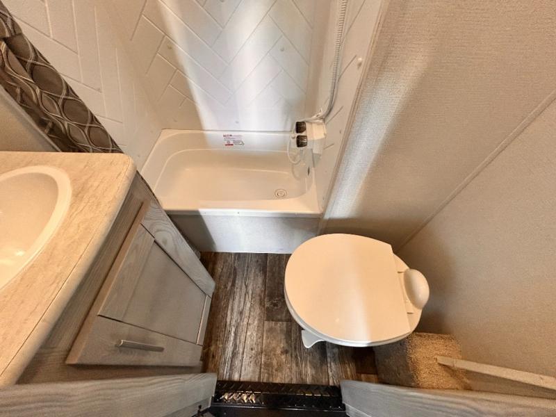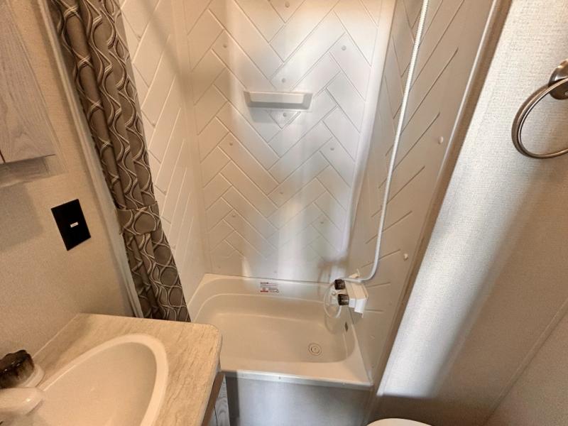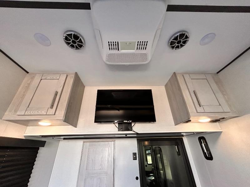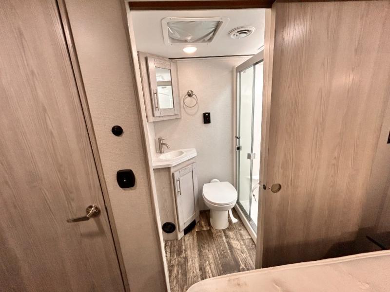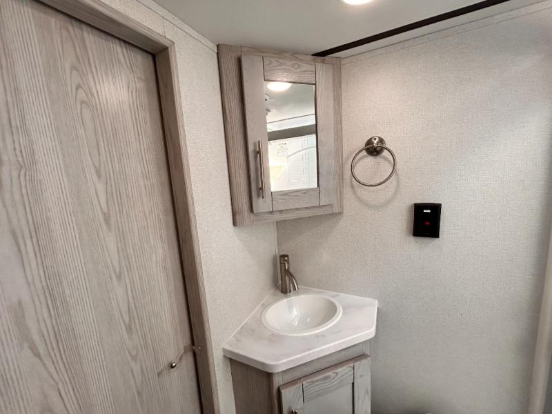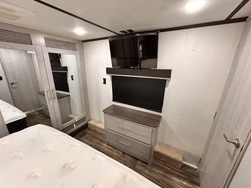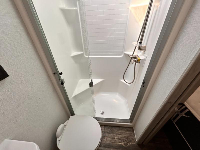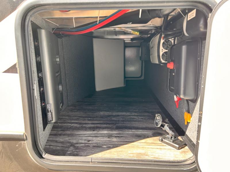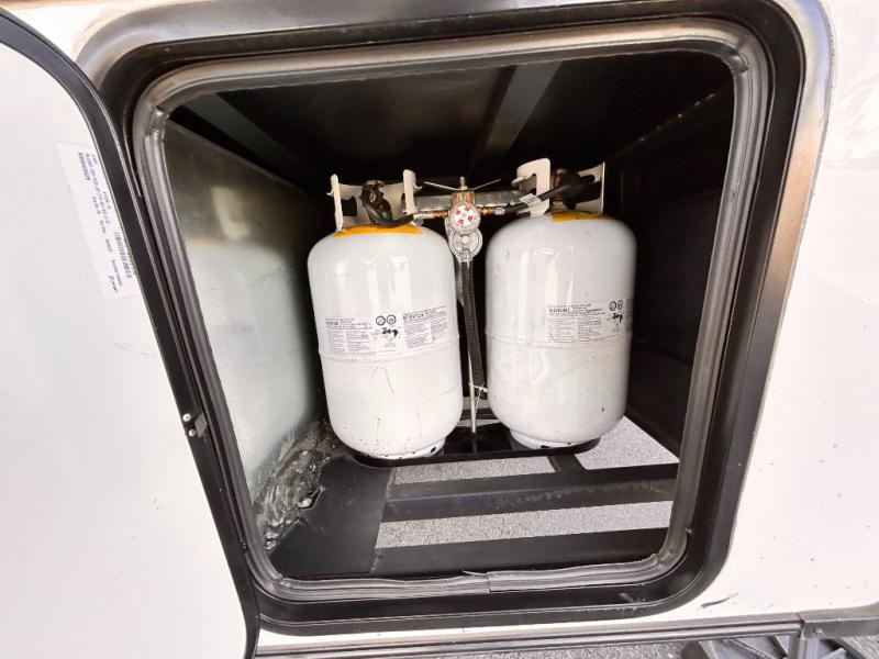 It's a clean decision to take this toy hauler on your next adventure with two full bathrooms! Everyone will have a comfortable place to lay their head at night between the residential king bed in the front private bedroom and in the 13' garage area there are dual opposing sofas with a queen bed above them and a loft with a bunk mat. The chef can prepare their best meals in the kitchen with the three burner cooktop and if you chose the to add the optional dinette slide in place of the sofa then you can enjoy your meals there and play a card game afterwards. The L-shaped sofa and two-person sofa offer a comfortable place to watch your favorite movies on the LED TV with fireplace below. There is plenty of storage throughout the inside between the front master closet and overhead cabinets, as well as the exterior with the rear Fuzion utility storage and the front Fuzion stor/mor box!