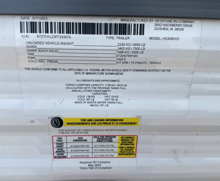 | Hitch Weight | 645 lbs |