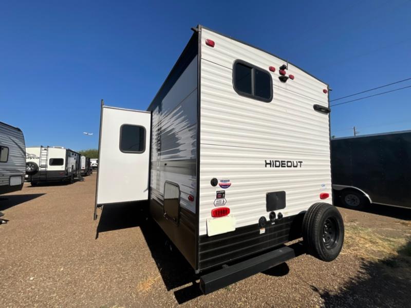 The Keystone Hideout travel trailer and destination trailer will be just what the doctor ordered for a stress-free holiday at your favorite campsite! There are a few exclusive features that you'll only find on a Keystone product, like the color-coded unified wiring, the preparations for 4G LTE and Wi-Fi, the Tuf-Lok™ thermoplastic duct joiners, the in-floor heating ducts, and the Tru-fit™ slide construction. Each model has a power awning for some shade in the afternoon, and the tinted safety glass windows will prevent the harmful UV rays from getting inside. You'll also have blackout night shades that you can close when you want privacy, and the SolarFlex 200 is a solar power system that will refill your battery to operate onboard 12V systems with just one day of peak sun exposure.