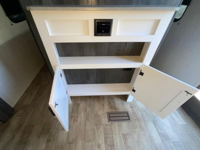 Get away with ease in this Hideout travel trailer! You will have your own private place to sleep in each night with the private bedroom up front. This bedroom has a queen-size bed, closets and nightstands on either side of the bed, overhead cabinets, and a laundry chute. The entertainment center has been prepped for a fireplace, and there is even TV prep too if you want to bring along a television for movie nights. The large slide holds the booth dinette and jackknife sofa, and the central vacuum will help you clean up any messes that are made throughout the trip.