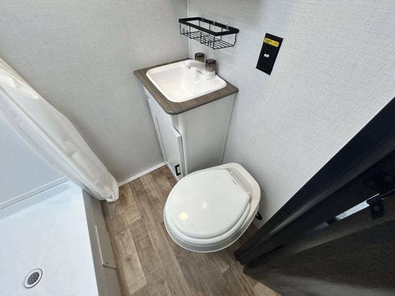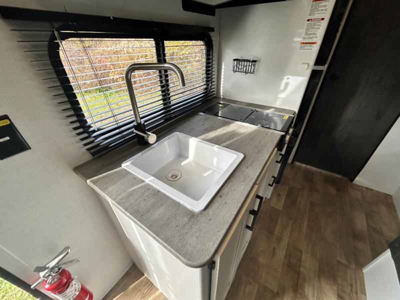 With any Keystone Hideout Single Axle travel trailer, there is an aluminum exterior allowing each to be lightweight for easy towing, the SolarFlex 200 so you can camp off-grid, tinted safety glass windows, and LCI SolidStep entry steps for stability when entering and exiting. The interior is light and airy, and includes a furnace, bedside outlets, blackout night shades, and more. You will also appreciate the Keystone exclusives such as the color-coded unified wiring, the 4G LTE and Wi-Fi prep, the Tuf-Lok thermoplastic duct joiners, the in-floor heating ducts, and the Tru-Fit slide construction.