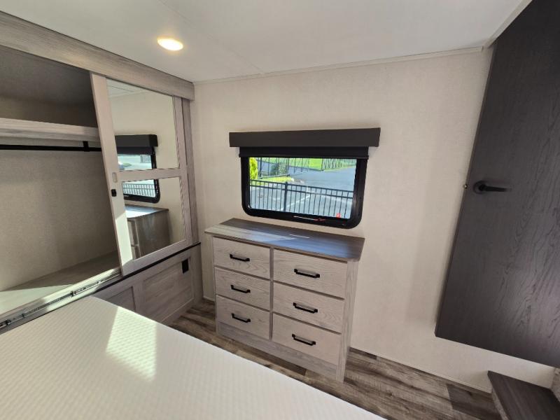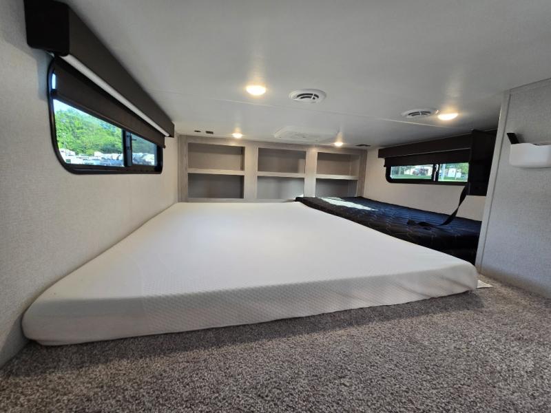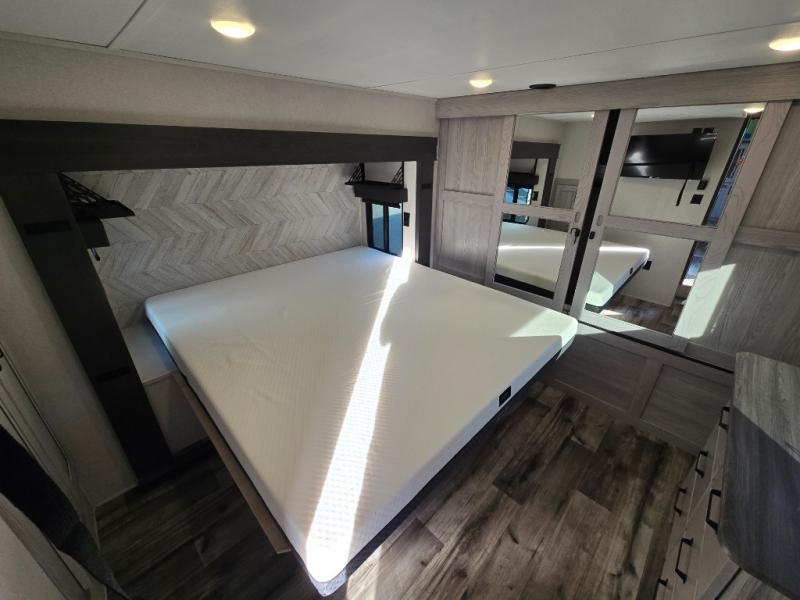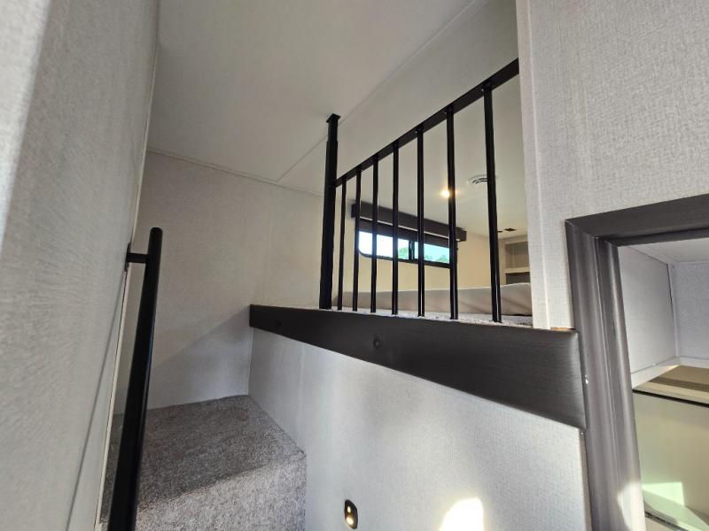 Include all of your favorite people on your next adventure in this Montana High Country fifth wheel! Not only is there a rear private bedroom with a king-size bed for you, but there is also a loft above with stairs that take you to the bunk mats. Now your kids will have their own space too. You can even host a few other travelers up front in the separate living room on the two hide-a-bed sofas. This area will be perfect for cozy sleeping because of the fireplace, and you can even watch a movie as you drift off to sleep because of the 50" LCD TV too. The full bathroom has a pivot-hinge door and a 48" x 30" shower with seat, and the kitchen has a breakfast bar that you can sit at to eat your cereal each morning