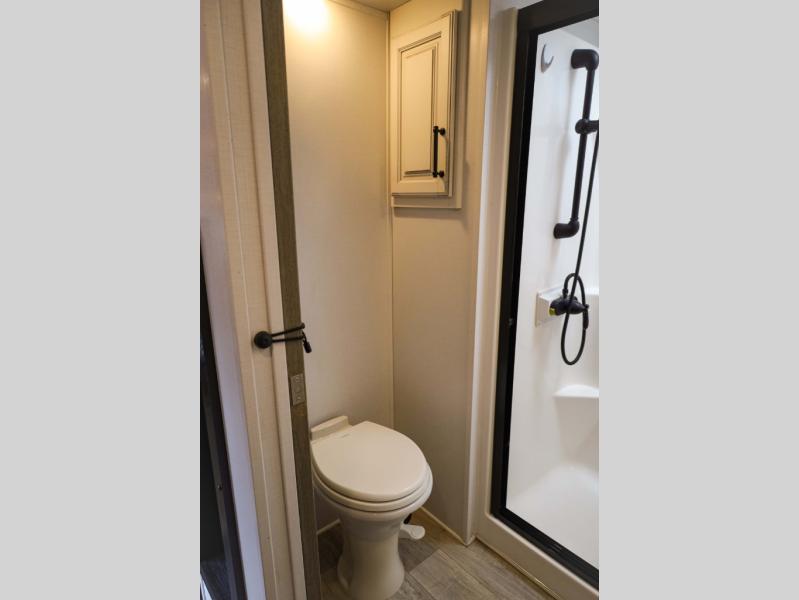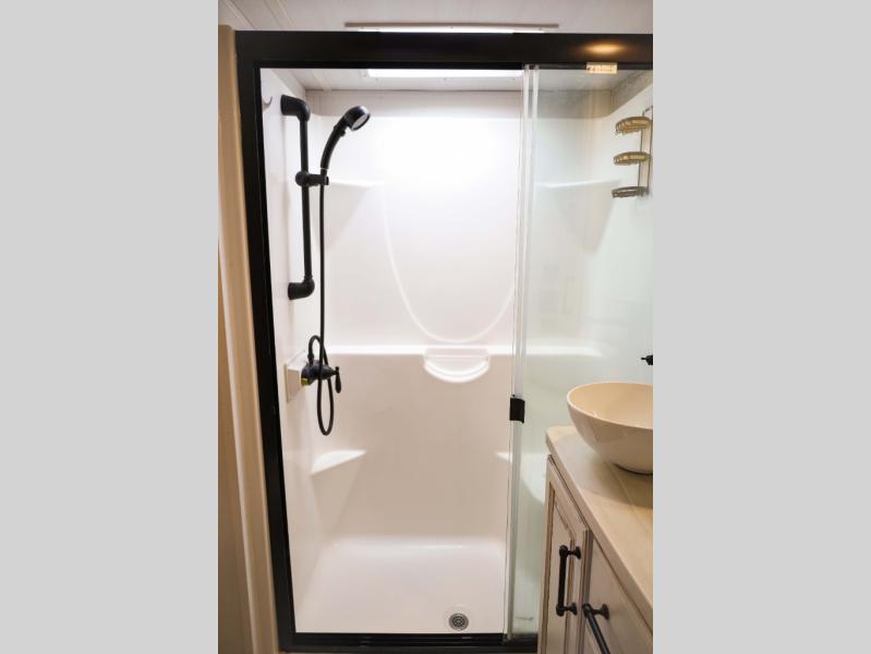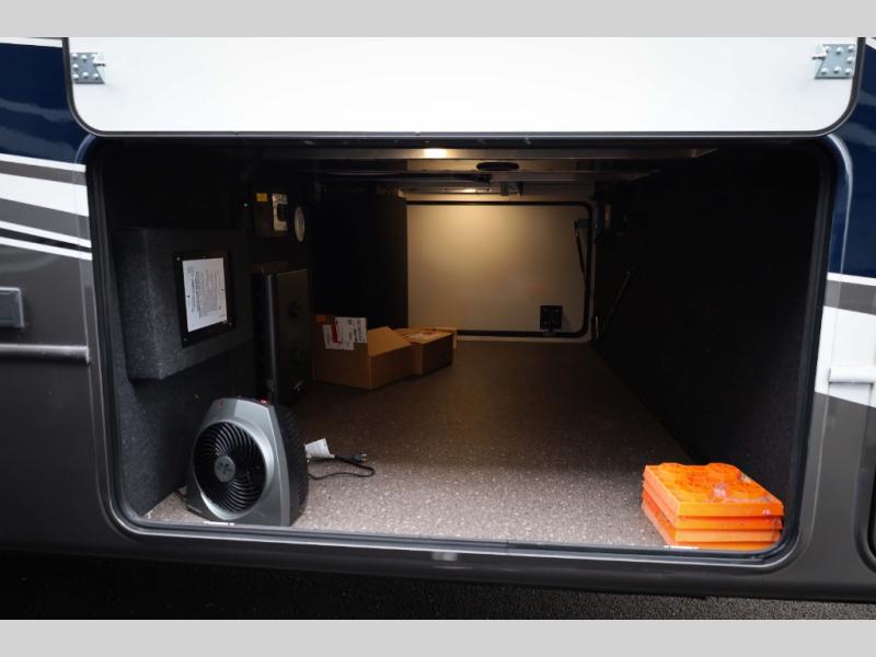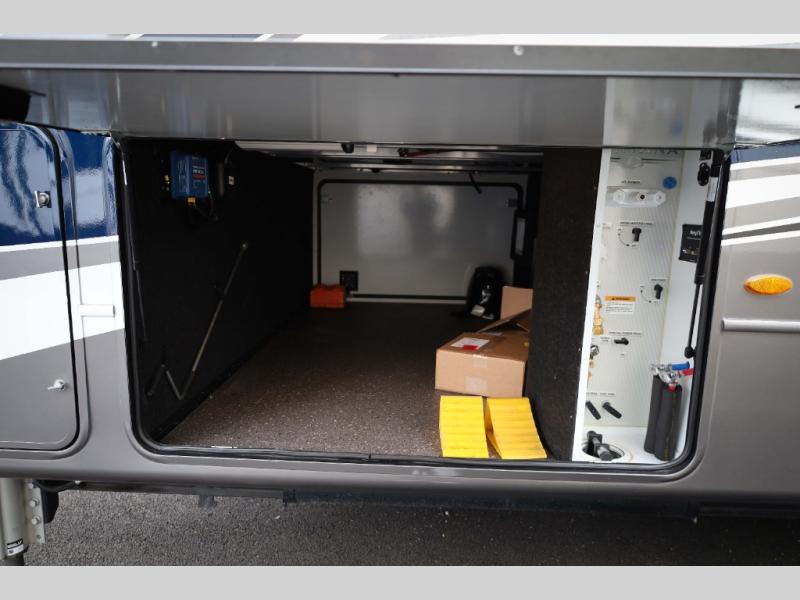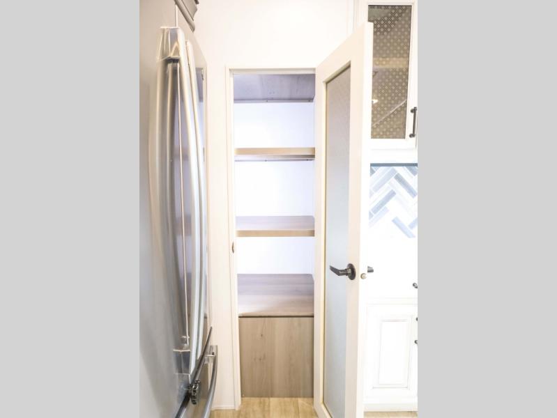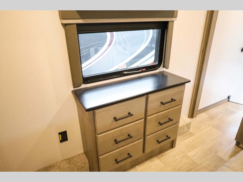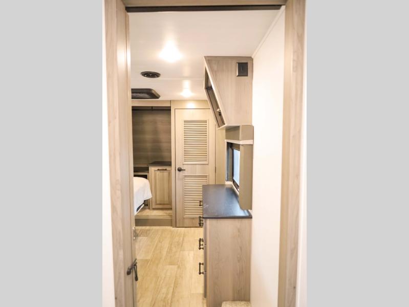 Master Suite Retreat: Sleep soundly on a King-size bed slide-out. The front master closet is enormous, offering stackable washer/dryer prep and ample shelving for extended stays.