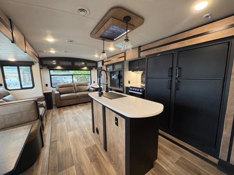 The Keystone Outback 328RL travel trailer is perfect for families or groups who want a mix of comfort, functionality, and adventure. With three slide-outs, a rear living area, and dual refrigerators, there’s plenty of space for relaxing, cooking, and entertaining during extended trips or weekend getaways.