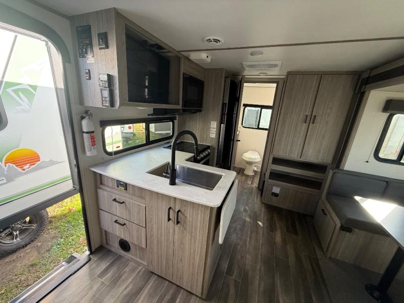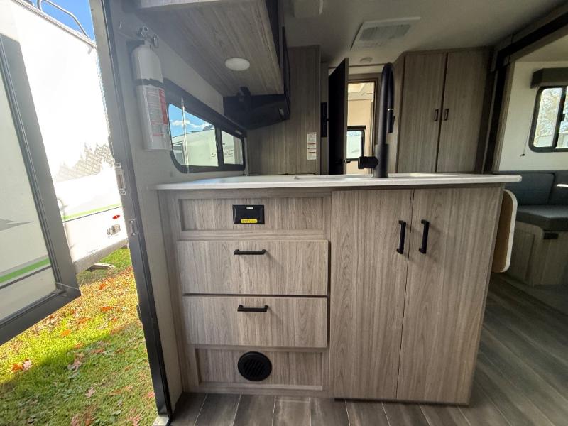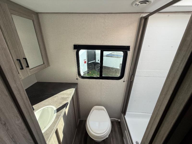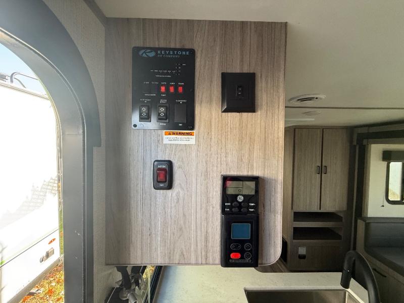 The Passport SL travel trailers by Keystone RV come in a compact design with travel-friendly lengths that are lightweight and easy to tow behind many smaller crossover SUVs. You will find several residential-style features such as durable Beauflor® vinyl flooring, upgraded window treatments and valances, and bathroom countertops. The exterior shower with hot and cold water is very useful as you get cleaned up before entering the RV, wash your pets, or even rinse a few dishes outside. The Passport also now contains a HyperDeck flooring system which is a high-performance, water-resistant RV floor that comes as a breakthrough design from the Keystone Innovation Lab. This flooring is more resilient, stronger, and lighter than traditional laminated wood construction.