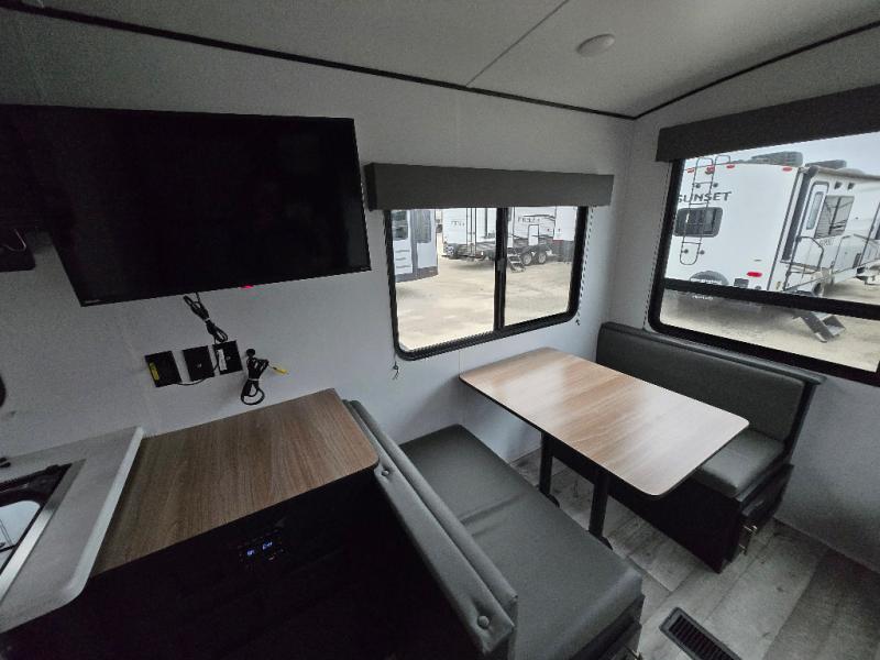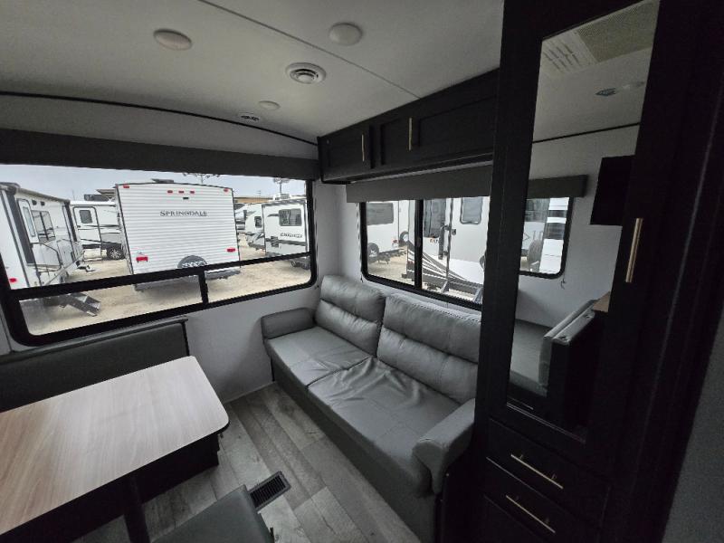 Getting away from work with your family and friends is easy to do with this Springdale travel trailer! You will have your own queen bed with dual closets and nightstands in the front bedroom, plus there is a divider to provide privacy when you need to change or have your own space away from the main area where the kiddos or your friends are sleeping on the furniture. When it's time for breakfast, you will find a full kitchen including a pantry, and a booth dinette to eat at or play games at when the weather isn't just right outside. And the full bathroom will keep everyone clean for whatever adventure is next!