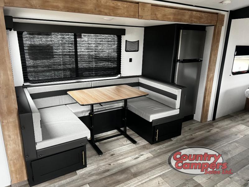 Make your camping dreams come true with this Springdale travel trailer! You are going to love how accommodating this trailer is for bedtime with its private bedroom with a queen bed and storage, double-size bunks on the opposite side of the trailer, and U-shaped dinette in the main living area. Across from the dinette, you will see an entertainment center to be used on a rainy day, and the full bathroom in the rear corner will allow all of you to stay clean without having to leave the trailer.