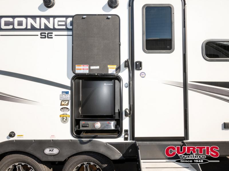 Each Connect SE travel trailer by KZ includes an NXG frame foundation that is constructed with high-strength low-alloy prime steel, uses the CNC controlled rail fabrications and camber, plus eliminates frame failures, construction issues, and corrosion! The Climate package provides added insulation to extend your camping season year-round with a fully enclosed, insulated and heated underbelly to protect the tanks and pipes. Some top features include the 17-inch range with illuminated control knobs, the seamless countertops with a deep undermount stainless steel kitchen sink including a sink cover for added countertop space, and a black high-rise faucet. You will also enjoy the KZ Engage package that is powered by OneControl to monitor and control the battery levels, the slide(s), the leveling system, the awning(s), plus the inside and outside lighting. Choose your favorite today!