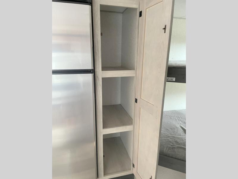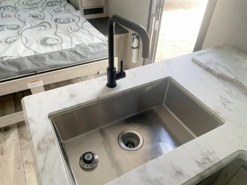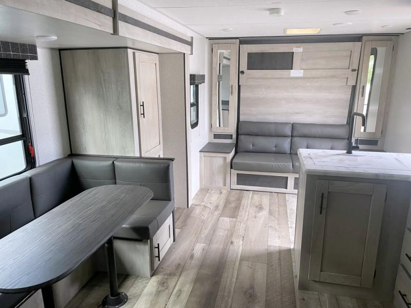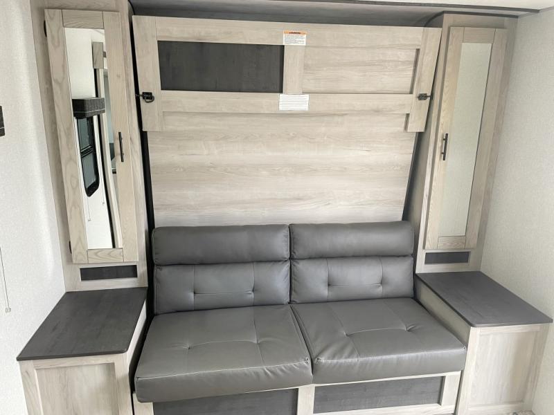 The Connect SE 231BHKSE will provide your family a great camping experience year after year. This lightweight bunk house has so much to offer. It makes the best use of space by means of a front Murphy bed. During the day, the front of the 231BHKSE is a sofa. At night, pull down the queen size murphy bed to convert this area to a bedroom. This model sleeps up to 8. Equipped with an outside kitchen.