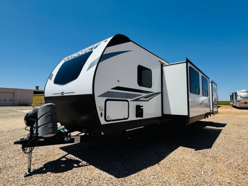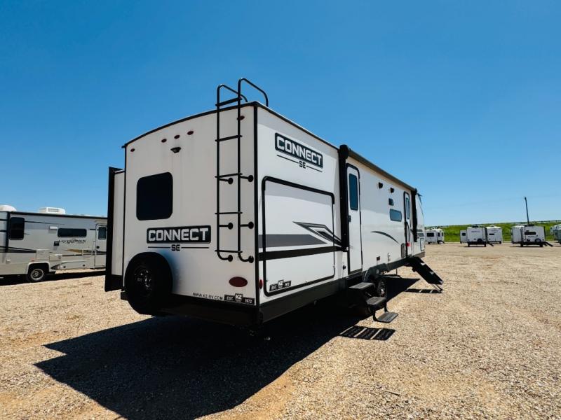 Each Connect SE travel trailer by KZ includes an NXG frame foundation that is constructed with high-strength low-alloy prime steel, uses the CNC controlled rail fabrications and camber, plus eliminates frame failures, construction issues, and corrosion! The Climate package provides added insulation to extend your camping season year-round with a fully enclosed, insulated and heated underbelly to protect the tanks and pipes. Some top features include the 17-inch range with illuminated control knobs, the seamless countertops with a deep undermount stainless steel kitchen sink including a sink cover for added countertop space, and a black high-rise faucet. You will also enjoy the KZ Engage package that is powered by OneControl to monitor and control the battery levels, the slide(s), the leveling system, the awning(s), plus the inside and outside lighting. Choose your favorite today!