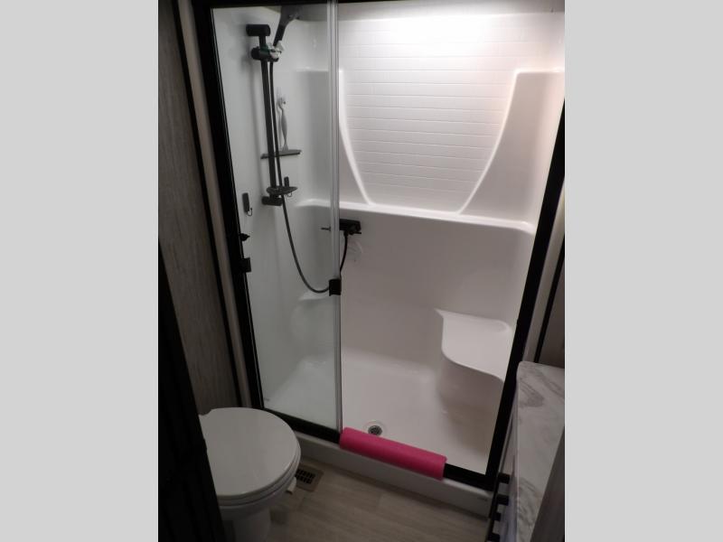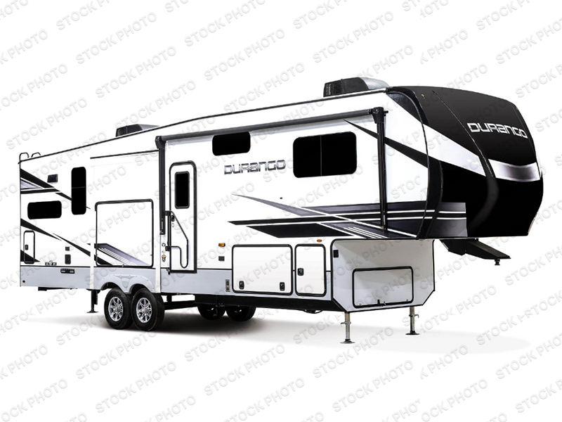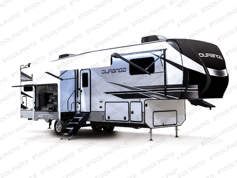 Enjoy full time living, an affordable price, and a wide body construction for more living space with every one of these KZ Durango light high-profile fifth wheels! These luxury units can be used all year round with the all-weather insulation package, the 3" x 14" foam-core in-floor straight-line heating system w/ a 35,000 BTU furnace, and the 15,000 BTU ducted roof A/C which optimizes the airflow by an average of 40% for better performance, cooling time, and reduction of noise. A few other construction features you will appreciate include a one piece, seamless walk-on Tufflex roofing material, Pex® in-floor heated waterlines, a Lamilux® gelcoat fiberglass exterior, and Dexter® axles with self adjusting brakes and height adjusting hangers. You can even head to the woods and go off-grid when you choose the optional off-the-grid solar package. Modern farmhouse cabinetry, a king size bed, and smart TVs will have you feeling like you never left home!