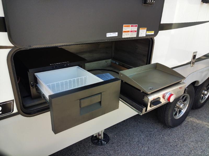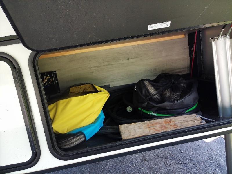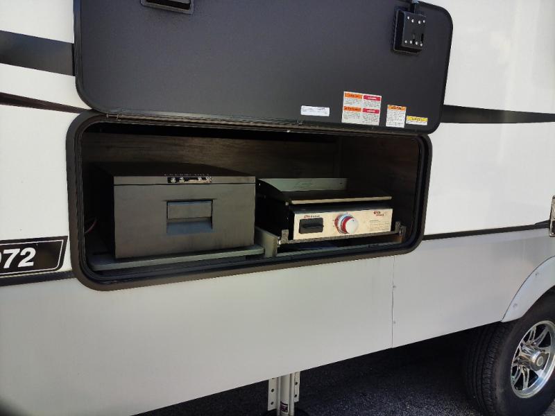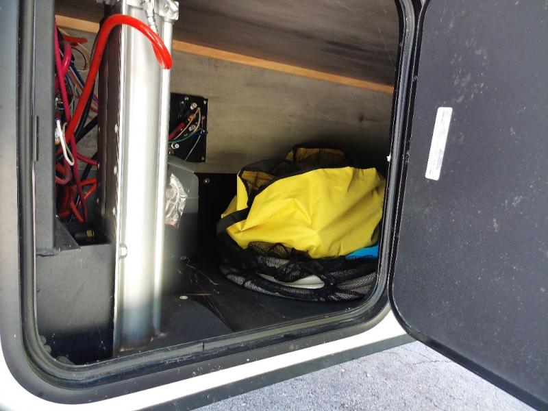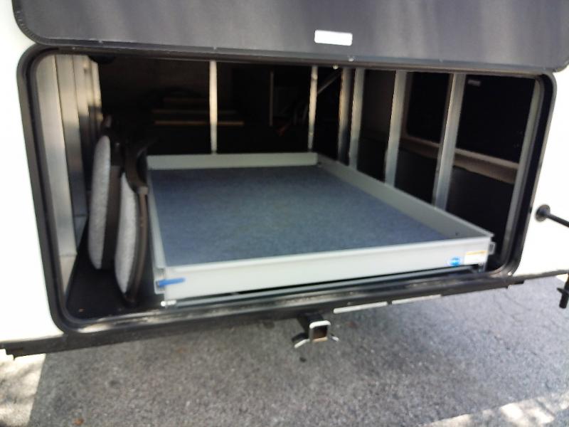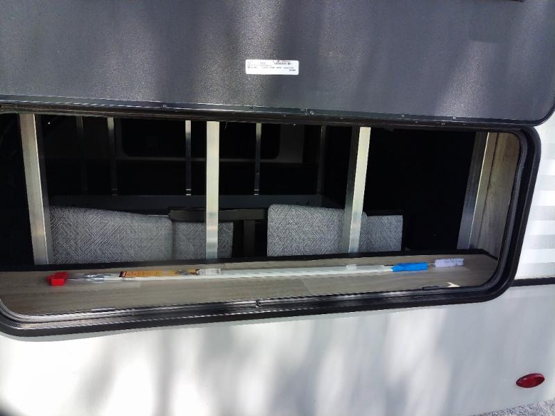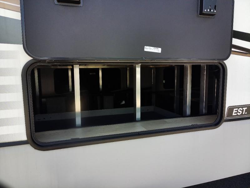 Generous Storage: Benefit from 160 cubic feet of heated, motion-lit basement storage with magnetic catch, slam-latch dual-lock baggage doors, and a 52" x 72" slideout storage tray.