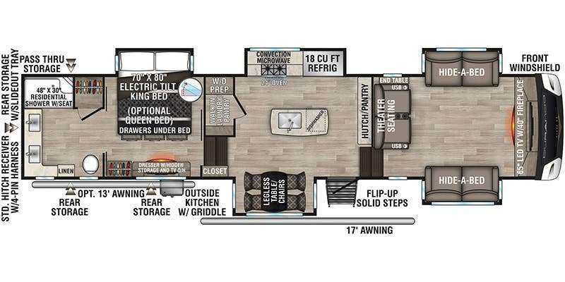 | Awning Info | 17' with optional 13' secondary awning |