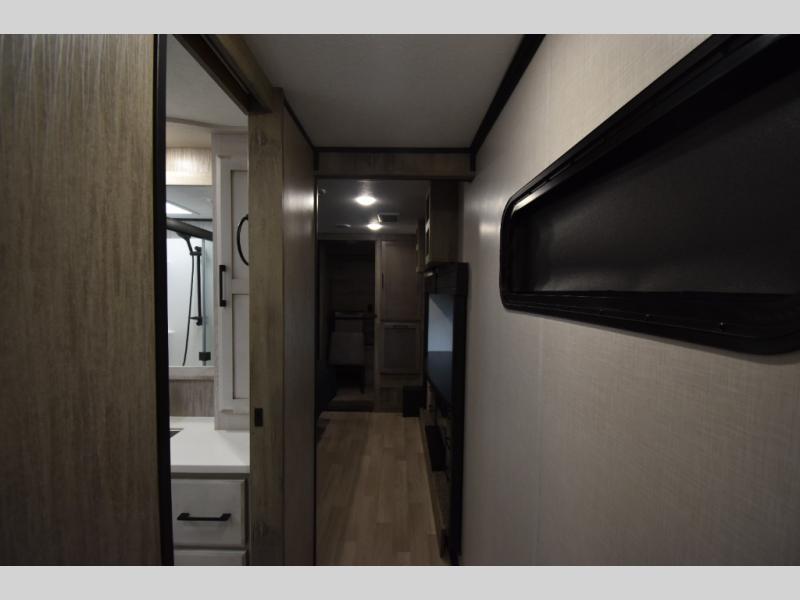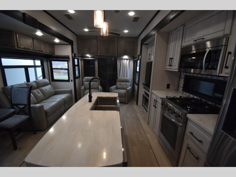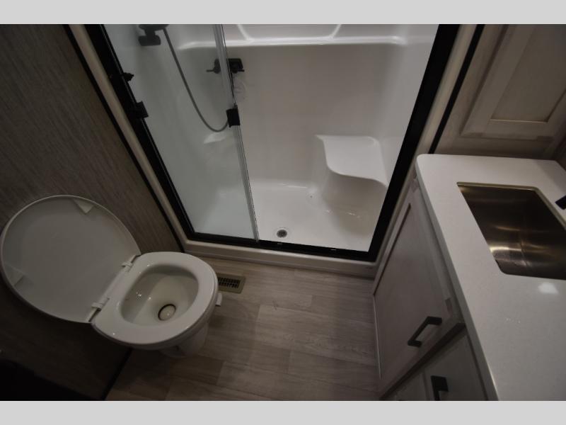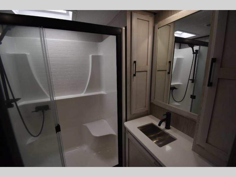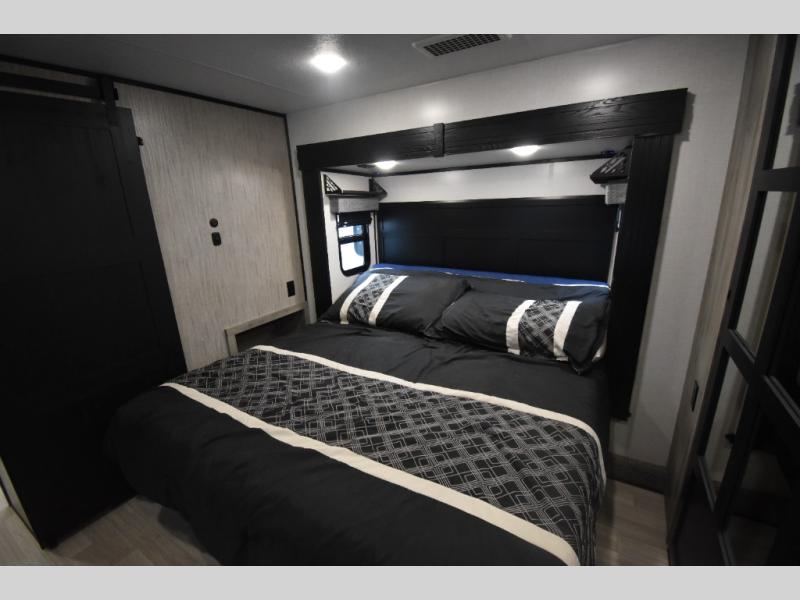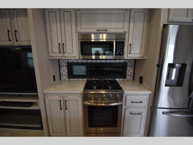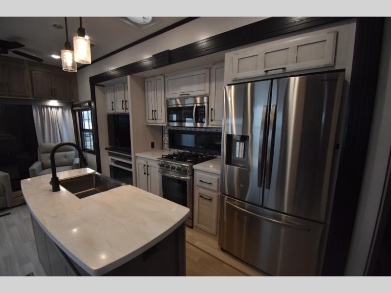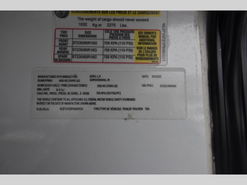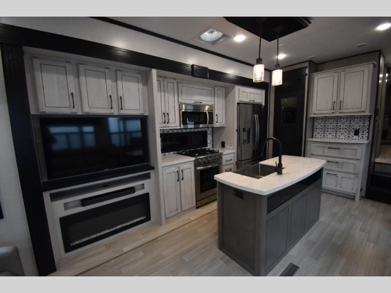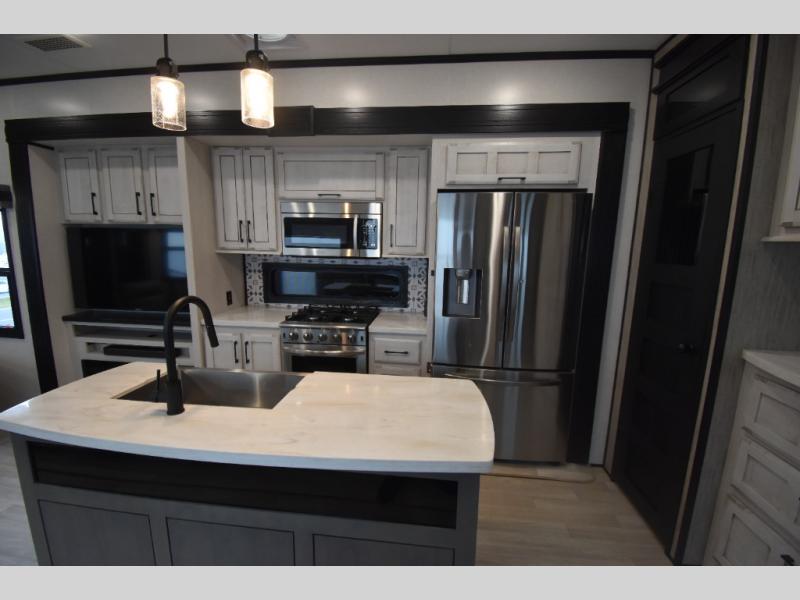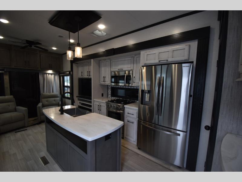 With any KZ Durango Gold full-time luxury fifth wheel, you will enjoy the look of modern farmhouse cabinetry, upgraded kitchen appliances such as a 30" convection microwave and 24" oven with four burner range, plus a stainless dishwasher. Other top features include an electric tilt bed with Serta Comfort foam king mattress, theater seating with cupholders and a USB plug, plus heat, massage, and power recline/decline features. You will also appreciate a handy central vacuum system with multiple attachments that stores out of sight. Each Durango Gold is constructed with six-sided aluminum framing, and has heated, insulated and an enclosed underbelly. It is also constructed with Tufflex roofing material which is flexible, puncture resistant, and reflective. Some additional standout features include a fully-vented attic system, and a Durango Towing package which includes a 2" towing receiver hitch with 4-pin wire harness connection. This will provide you with 3,000 lbs. of towing capacity. Come choose your favorite lightweight high-profile wide body luxury fifth wheel today!