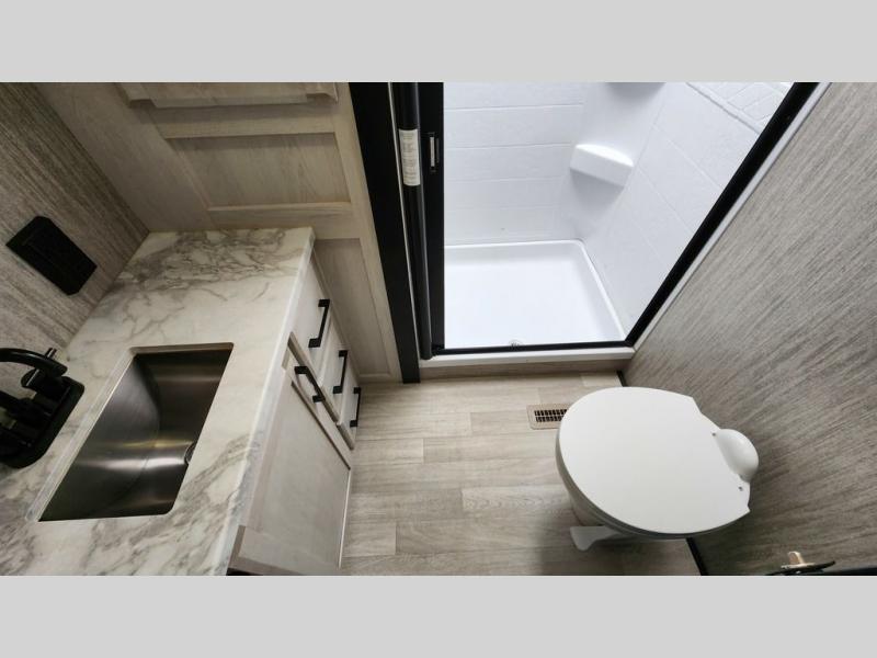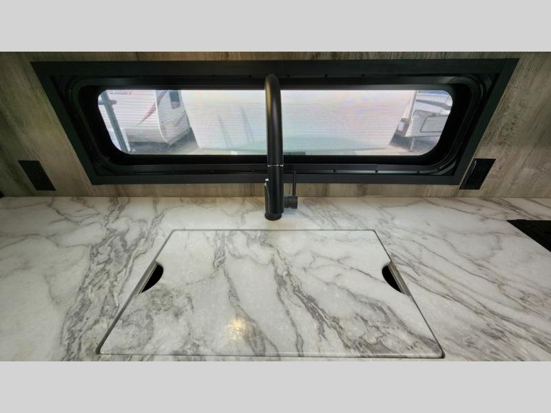 With any Durango Half-Ton fifth wheel by KZ you will enjoy lightweight towing at an affordable price! Controlling the functions of your unit will be a breeze with the KZ Engage powered by OneControl that includes a 5" touchscreen to control awnings, lights, tanks, and more. There are so many exterior conveniences to make each trip enjoyable, like the 2" towing receiver hitch with a four-pin wire harness connection, the metal latches on the baggage doors, the fully-finished, heated and sealed basement storage compartment, and the list goes on! Step inside to find modern farmhouse cabinetry, solid hardwood slide out fascia, seamless countertops with a deep undermount stainless steel sink, and many more at-home comforts. You can further customize your fifth wheel by adding one or more of the many options that are available, like the full-timers hardwood desk in place of the dinette table, the 32" exterior TV with a bracket, and the four-point auto electric leveling to name a few!