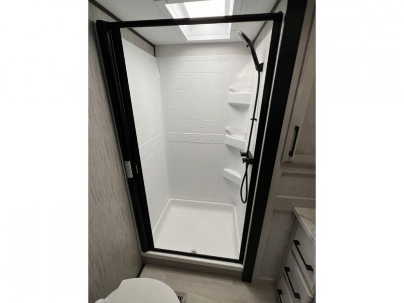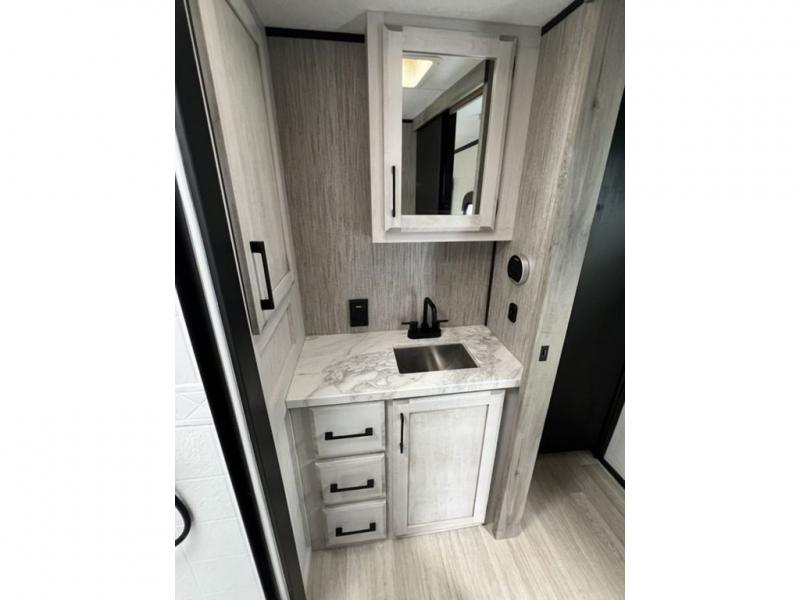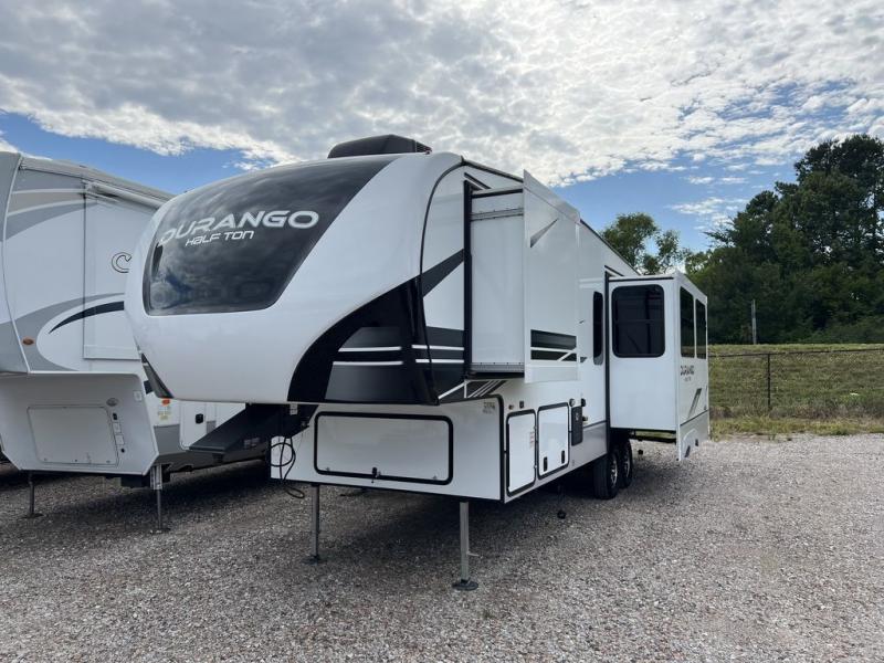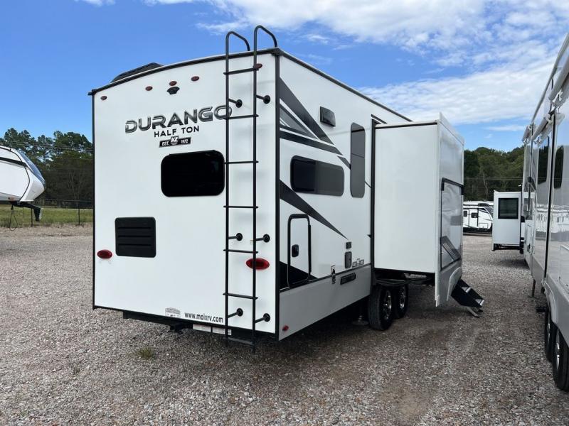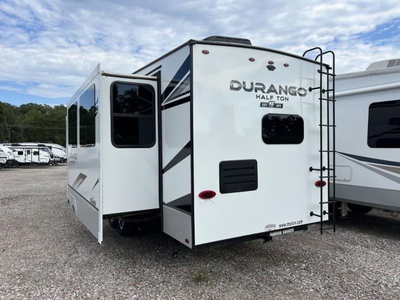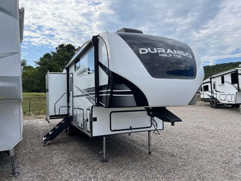 With any Durango Half-Ton fifth wheel by KZ you will enjoy lightweight towing at an affordable price! Controlling the functions of your unit will be a breeze with the KZ Engage powered by OneControl that includes a 5" touchscreen to control awnings, lights, tanks, and more. There are so many exterior conveniences to make each trip enjoyable, like the 2" towing receiver hitch with a four-pin wire harness connection, the metal latches on the baggage doors, the fully-finished, heated and sealed basement storage compartment, and the list goes on! Step inside to find modern farmhouse cabinetry, solid hardwood slide out fascia, seamless countertops with a deep undermount stainless steel sink, and many more at-home comforts. You can further customize your fifth wheel by adding one or more of the many options that are available, like the full-timers hardwood desk in place of the dinette table, the 32" exterior TV with a bracket, and the four-point auto electric leveling to name a few!