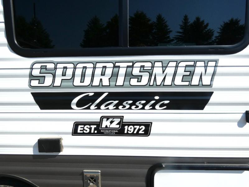 With any Sportsmen Classis travel trailer, expandable, or toy hauler by KZ you will find durable construction materials, like the 3/8" full-walkable roof and the one-piece seamless Tufflex material. Each model includes scissor-style stabilizer jacks, a Key-Alike program for baggage and entry doors, and a Leash Latch with a bonus beverage opener. You will find interior and exterior speakers plus backup camera prep and solar prep. The Sportsmen Classic is designed to make you feel at home with LED interior lights, rail-style cabinet doors, residential grade linoleum, and plenty of storage space for all your belongings.