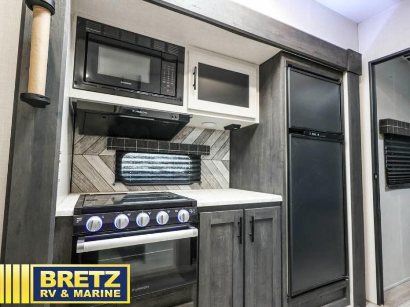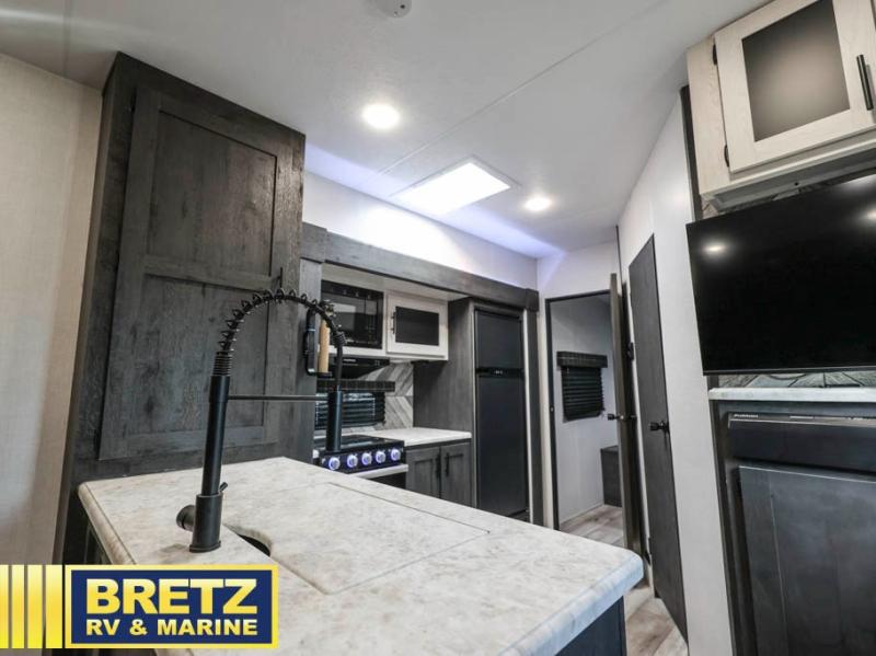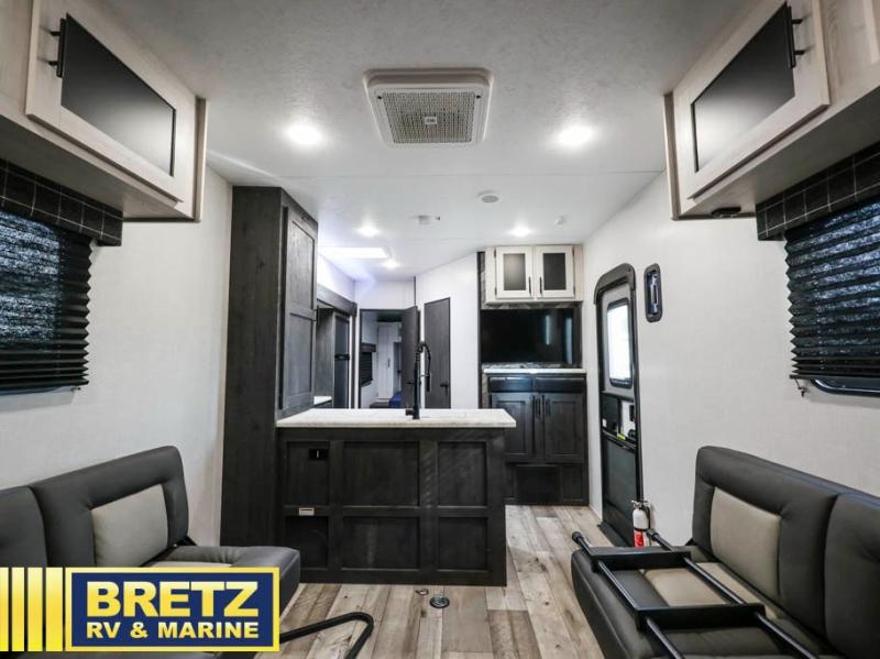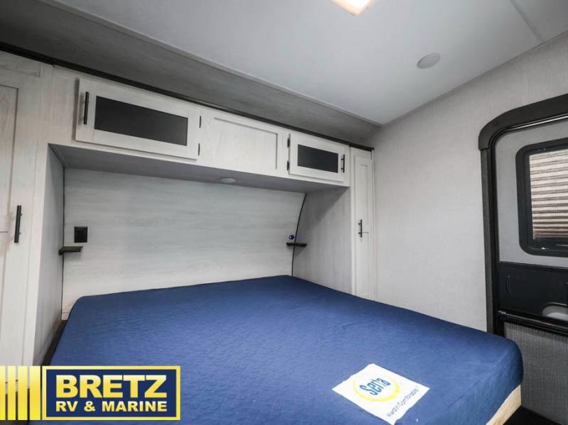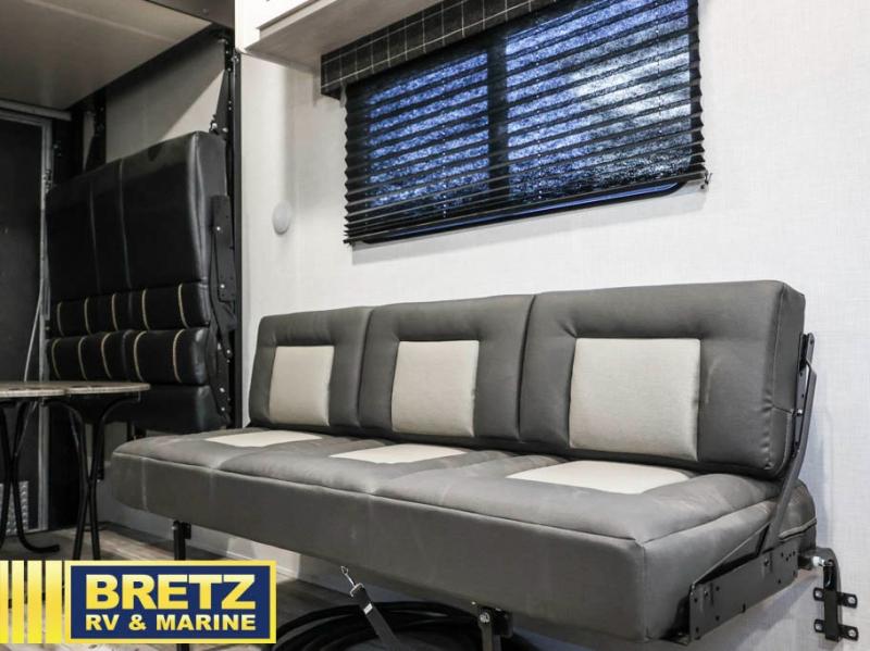 With any KZ Sportster toy hauler, there is an 102" wide body allowing a wider space for toys and interior space for yourself, a one-piece, seamless, walk-on roof with Tufflex roofing material that features high solar reflectivity, is puncture and tear resistant, offers high thermal emissivity and is a sustainable material giving you years of enjoyment. The Equa-Flex suspension helps provide a smooth tow, and the Climate Package allows you to camp year-round. The interior offers a multi-media sound bar stereo with Bluetooth, HDMI and USB chargers to keep the electronics working, wider pocket/passage interior doors, and residential grade linoleum for durability and easy cleanup. Depending on the Sportster you choose there are many more standard features you will appreciate, and there are options to choose from to enhance the toy hauler including the Off-Grid package, generator prep with a 30 gallon fuel tank and pump station, a 4.0 or 5.5 generator, a Party patio package with railing only, and more!