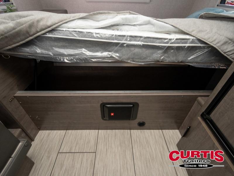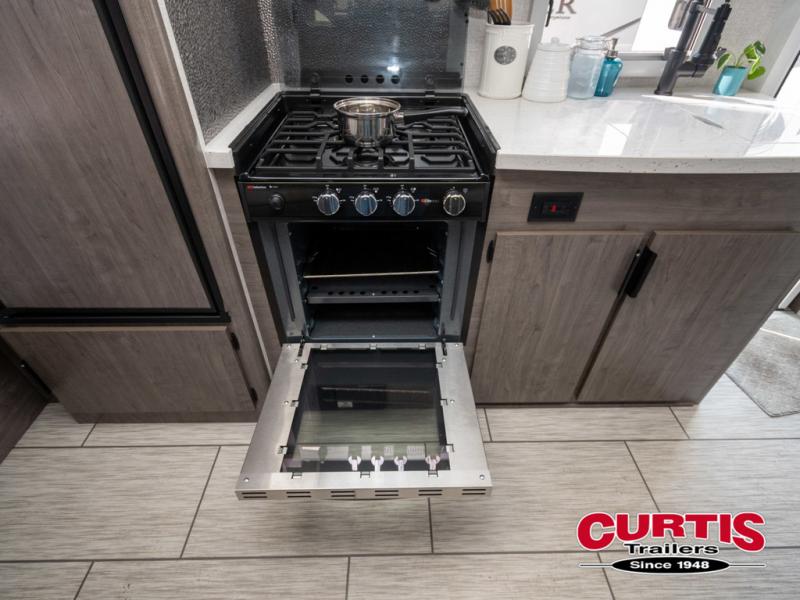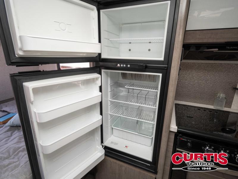 Gain your travel freedom with this Lance travel trailer! Trips will be more enjoyable and definitely more stylish with this trailer. You have solid-surface countertops in the kitchen, hardwood flat-panel cabinet doors, radius Euro overhead cabinet doors with decorative pulls and LED lighting, a wall clock, and a key hanger. The deluxe queen pillowtop innerspring mattress has two LED reading lights that you can use before you're ready to call it a night, and there is a privacy curtain that you can draw to section the bed off from the rest of the trailer. The pull-out storage drawers at the U-shaped dinette are another way you can store belongings.