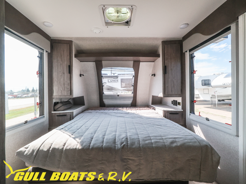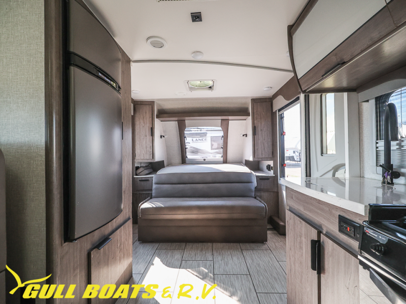 The new line-up for the Lance travel trailers centers around three all-new gorgeous interior décor options, a lengthy list of product enhancements, and simplification of ordering with many optional features being made standard. Some of the new features you'll want to take note of are the one piece Energy Star rated synthetic membrane roof, the 12V smart tongue jack-plug/safety chain holder, Keyed-Alike storage compartment doors for all of your camping essentials, and the dual layer Azdel composite will prevent your unit from rotting away. The interior includes solid surface galley countertop, Euro-Ply cabinet construction, and a Shower Miser water system. You'll also find an innerspring mattress with a bedspread, a dual pane shower skylight, USB charging ports to keep your electronics at 100%, plus a JBL AM/FM stereo and JBL interior/exterior Bluetooth speakers to keep the party going!