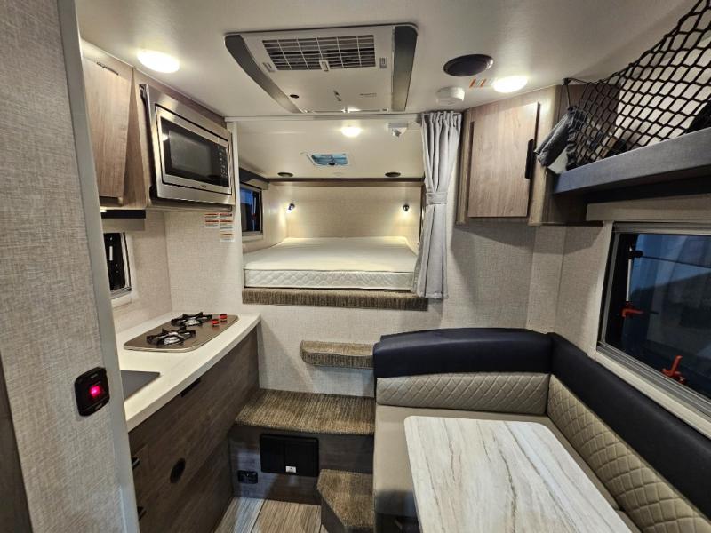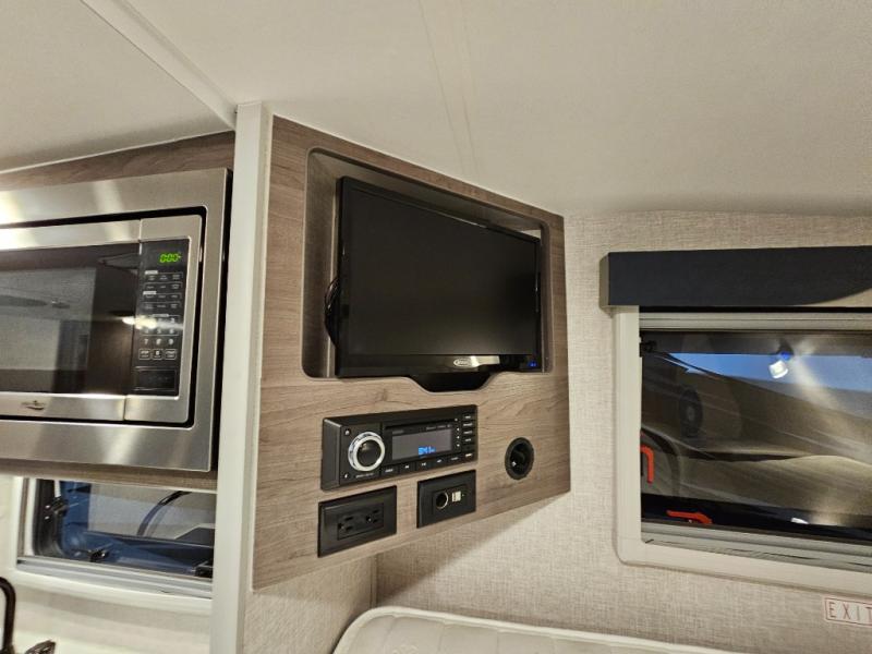 If you want to be able to pick up and go at a moment's notice, then this Lance truck camper must be a part of your next adventure. Because this unit has been designed to fit on the back of a half-ton pickup truck with a short bed, you have greater flexibility for your travel plans. While this camper may be small enough to fit in the back of your truck, there is nothing small about the features it contains. From the hybrid queen mattress and wardrobe closet to the fully equipped kitchen and wet bath, this truck camper provides everything you need for a successful getaway. There is also a 19" 12V TV to keep you entertained, as well as an AM/FM/DVD stereo with interior and exterior Bluetooth speakers!