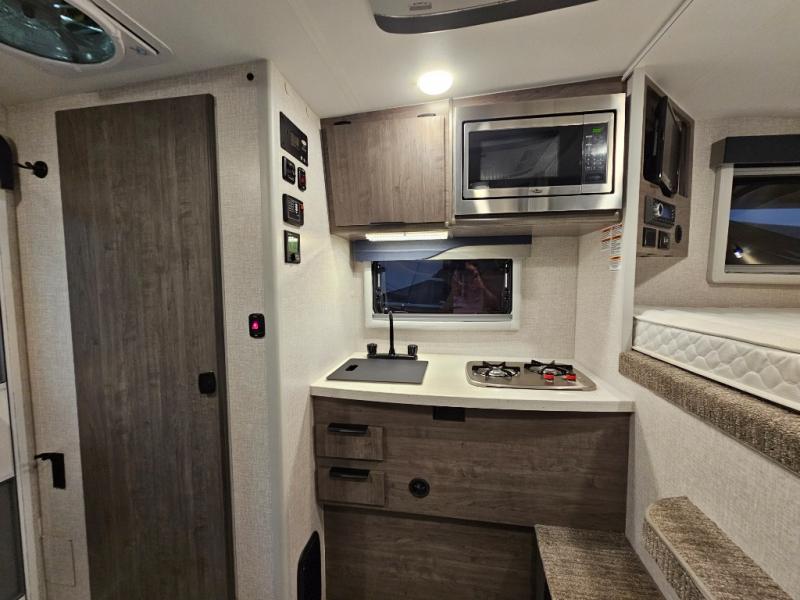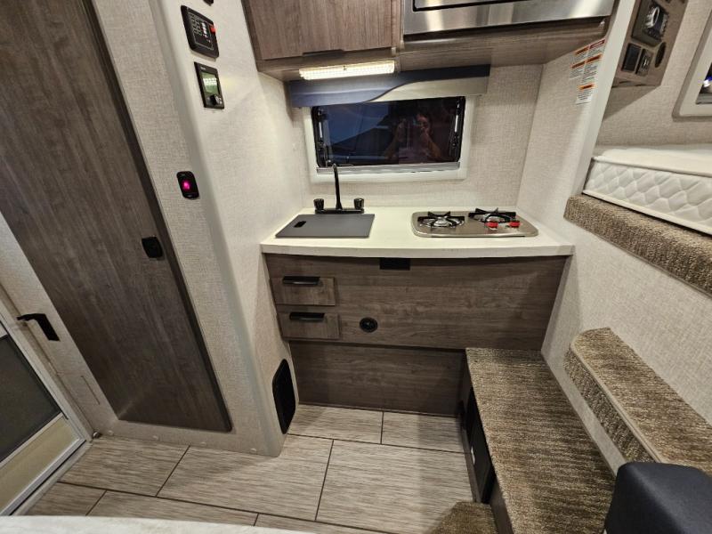 There's no better time than now to start camping in a Lance truck camper! Each model is constructed with a laminated fiberglass bonded exterior, a one-piece roof membrane, and block foam insulation throughout to enjoy four seasons of camping. You'll appreciate a keyless entry, an exterior wash station, electric remote camper jacks, and eye-catching mountain scene graphics. Inside, there are flat panel cabinet doors, Euro window treatments with a combo screen and shade, plus a convenient key hanger. There is also a dual pane bath skylight, a solid surface galley countertop, a stainless steel microwave, plus many more interior comforts. And don't forget to check out the select optional features available to further customize your truck camper!