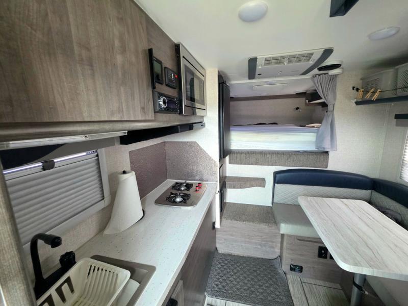 There's no better time than now to start camping in a Lance truck camper! Each model is constructed with a laminated fiberglass bonded exterior, a one-piece roof membrane, and block foam insulation throughout to enjoy four seasons of camping. You'll appreciate a keyless entry, an exterior wash station, electric remote camper jacks, and eye-catching mountain scene graphics. Inside, there are flat panel cabinet doors, Euro window treatments with a combo screen and shade, plus a convenient key hanger. There is also a dual pane bath skylight, a solid surface galley countertop, a stainless steel microwave, plus many more interior comforts. And don't forget to check out the select optional features available to further customize your truck camper!