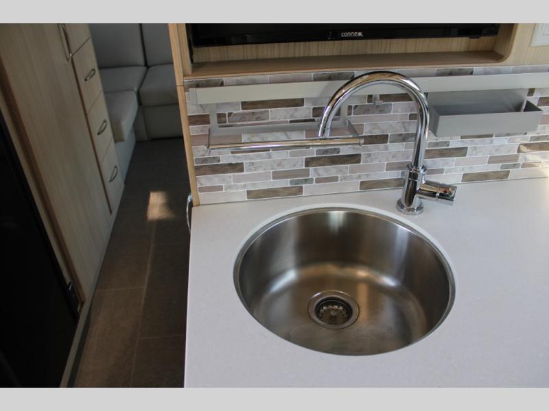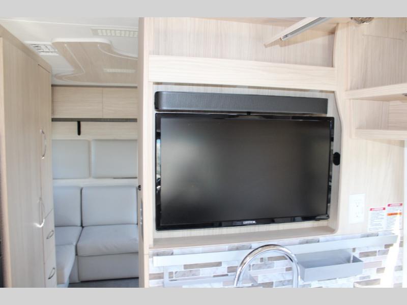 Each Unity Class B+ diesel motorhome by Leisure Travel sits on a durable Mercedes-Benz Sprinter 3500 dual rear wheel chassis with a 3.0L V6 turbo diesel engine to power your adventures. The powder coated steel undercarriage support structure and vacuum-bonded construction provide a coach that will last for years, and there are eight sleek exterior paint options to make the coach your own. You'll love driving the Unity with its electronic stability control, adaptive cruise control, and driving assist package for added safety. The luxurious interior includes Ultraleather furniture, a contoured solid surface Corian countertop in the kitchen, new decor options, plus many more comforts. All of your power need will be met with dual 6V AGM coach batteries, plus a 2000W pure sine inverter and a 30 Amp power cord. And you can be sure to stay comfortable year around with a 16,000 BTU furnace and a low profile 15,000 BTU ducted A/C with a heat pump.