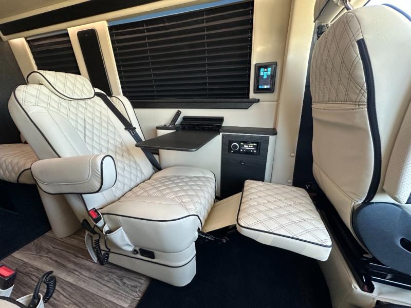 Just imagine you and seven others traveling to a local tournament or festival with this Daycruiser 144 Class B diesel van. This coach will safely carry everyone in comfort with the Maybach-style seating. Two people can even take a nap on the sofa/foldout beds while the others enjoy the great outdoors once you have reached your destination. The passengers may decide to watch the LED HDTV and listen to the movie through the wireless head phone system. Someone can even heat up soup or leftovers in the overhead 110V microwave and grab a drink from the refrigerator. And the rear wall entry door offers more safety and convenience, so take a look today!
