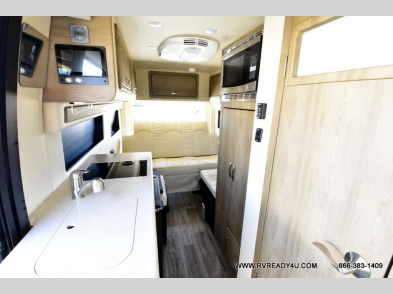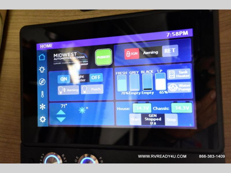 Each Legend Class B gas motorhome by Midwest Automotive Designs offers a Ram ProMaster chassis, a ECO charging system, a 100 watt rooftop solar charging system, a rear hitch with a wiring package if you need to pull a trailer or such, and a rear back-up camera system for easy parking. Inside you can ride and stay in luxury on leather seating while appreciating the custom dash and door handle wood grain upgrade, the custom Maybach style seating with seat belts, and the kitchen amenities to make warm meals. Start traveling today in your own Legend!