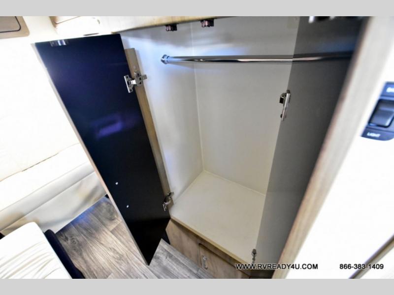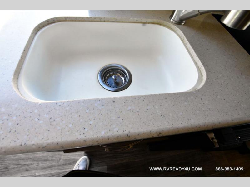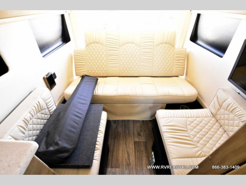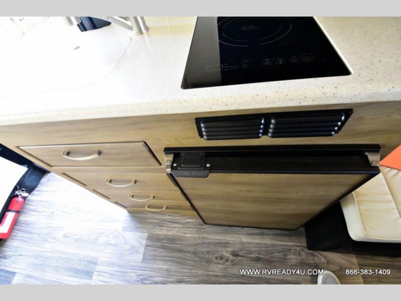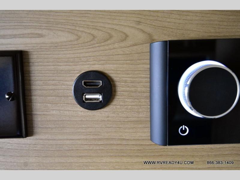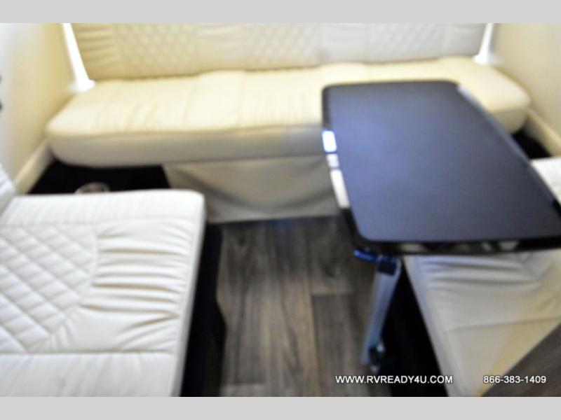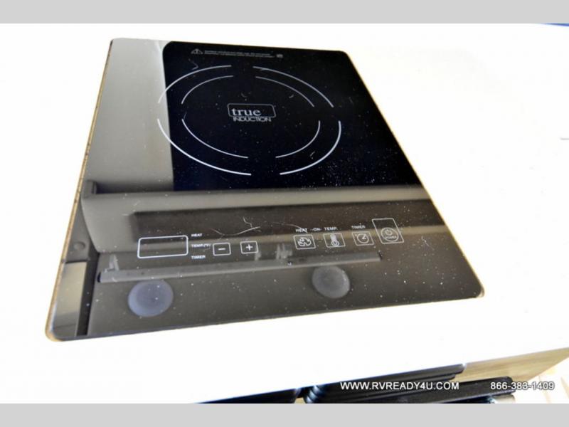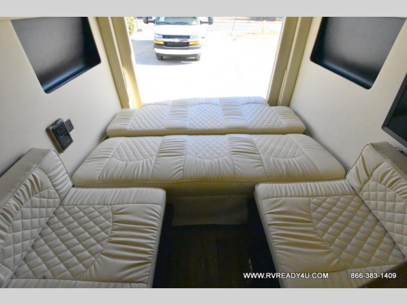 Start traveling like you are driving an SUV yet you will have your own bedding for two to three people once the rear power lounge is set up with the two side sofas for the night. You can watch a movie on the Samsung HD LED Smart TV when you wake up before making breakfast in the convection microwave or on the induction cooktop. You might like to grab a snack from the overhead cabinets instead. And the removable table/dinette will allow you to eat a meal or do some work while sitting comfortably on the leather seating. There is a mid-coach wet bath to stay refreshed and ready for whatever you decide to do next! You might even like to add the Onan 2.2 propane generator option for extra power.