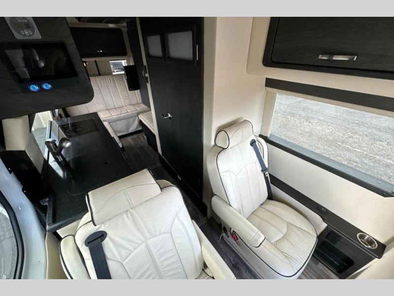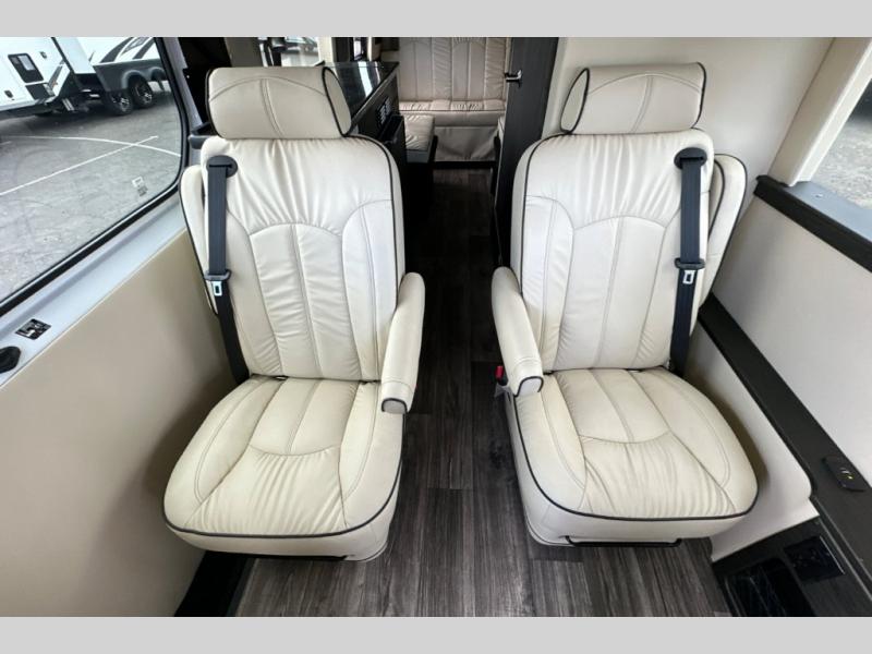 Each Passage Class B diesel motorhome begins with the safety and performance engineering of the Mercedes-Benz Sprinter and includes luxury and convenience throughout. The Suburban water heater offers instant hot water on demand, the convection microwave and induction cooktop allow you to make meals whenever you like, and the 12 Volt/110 Volt refrigerator allows you to store cold items while traveling. The style and comfort of the hand-stitched leather seating, polished wood veneer cabinets, and solid surface countertops will impress you every time you take to the road. You also have the convenience of technology with a 100-Watt rooftop solar charging system, an HDMI input, and a location prepped for satellite TV and Wi-Fi!