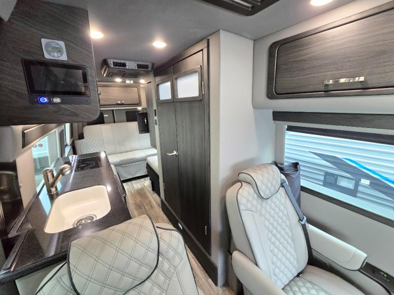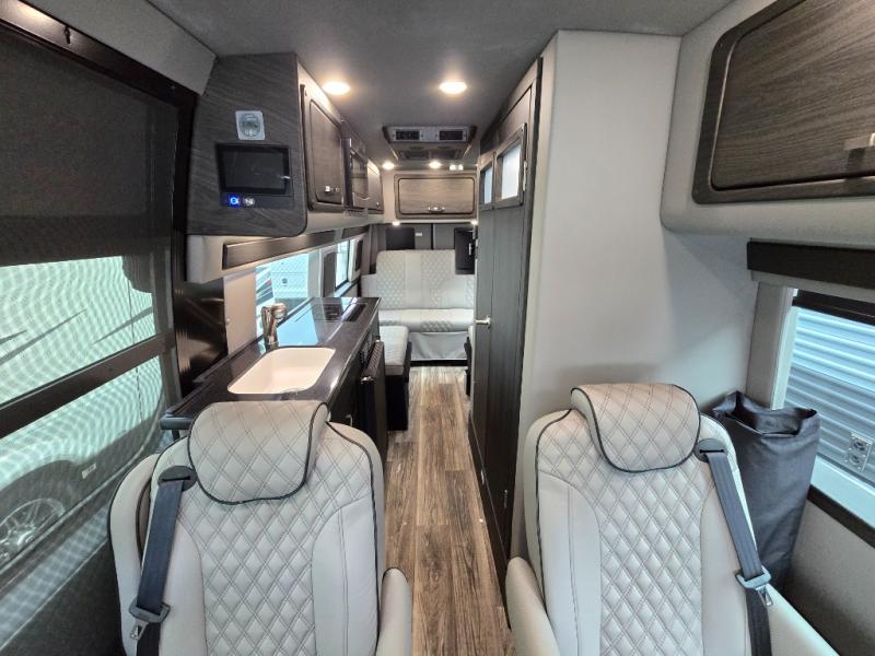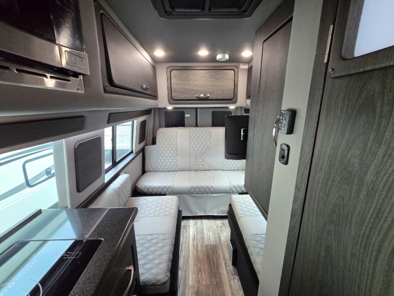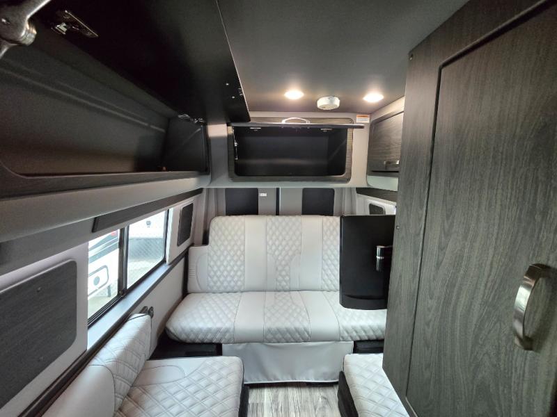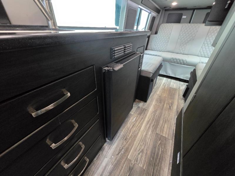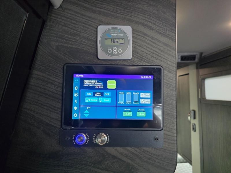 The sophisticated elegance found on the Patriot Class B diesel motorhomes by Midwest Automotive Designs is sure to entice you! The interior is packed with luxury appointments to make any trip enjoyable. Some of these include valances with wood inlay and indirect lighting, solid surface countertops, custom seating with seat belts, and a complete privacy shade package you are sure to appreciate. There are multiple 120V outlets and USB 12V chargers to keep you powered up, and the Quiet Tech 2.5kW propane generator will provide even more power. Outside, you'll find an upgraded Sumo suspension, an all-in-one utility bay, an exterior shower, and a roof-top solar charging system that will provide off-grid capabilities. And don't overlook the available options, like the air ride suspension system, outdoor entertainment prep kit, power window shades, and more!