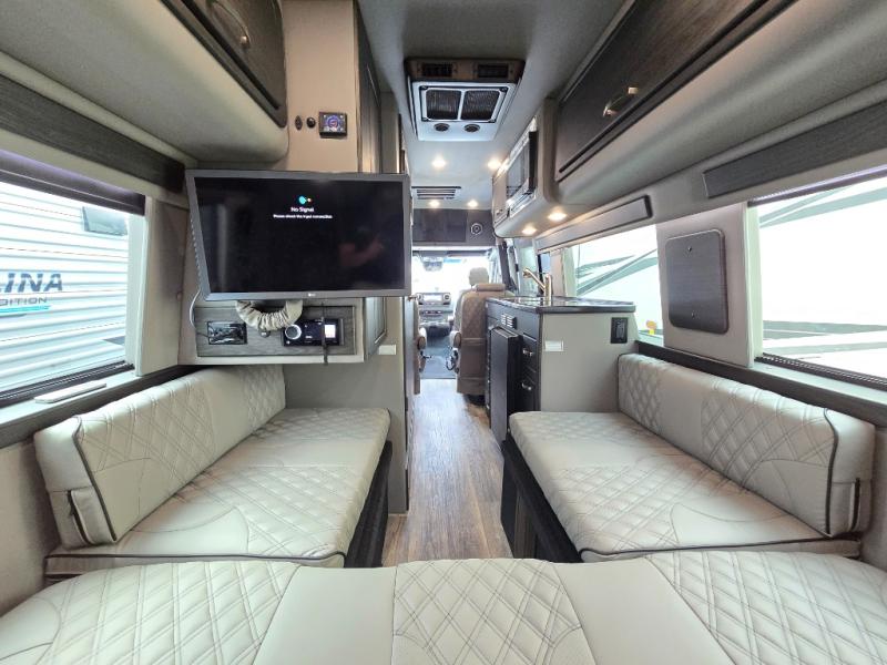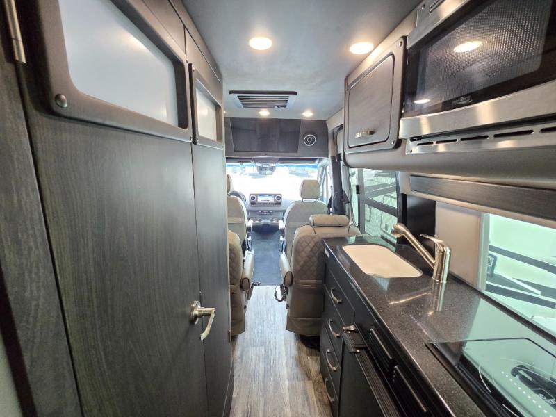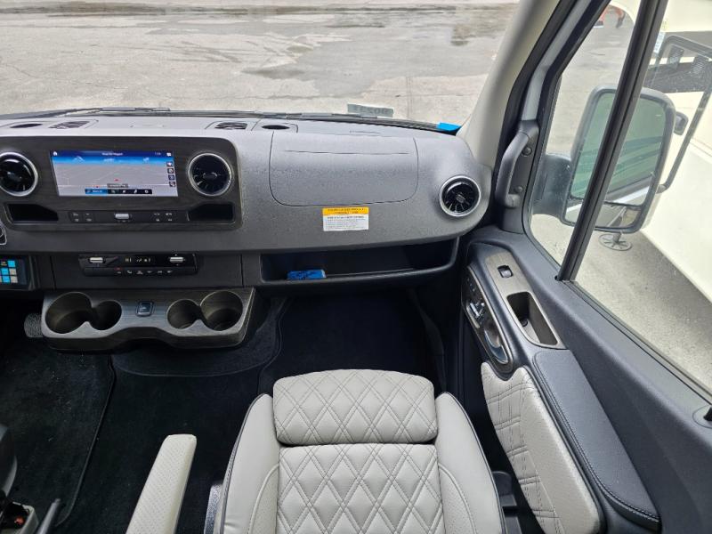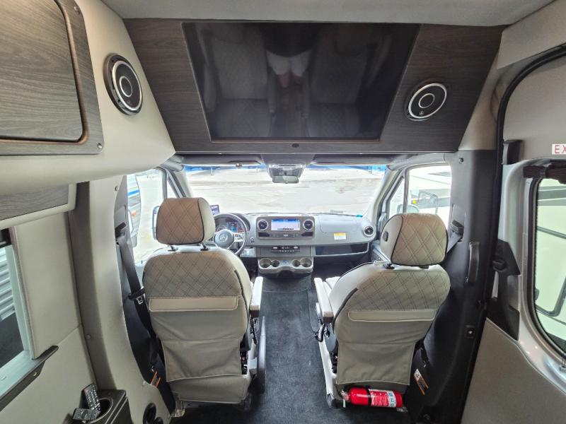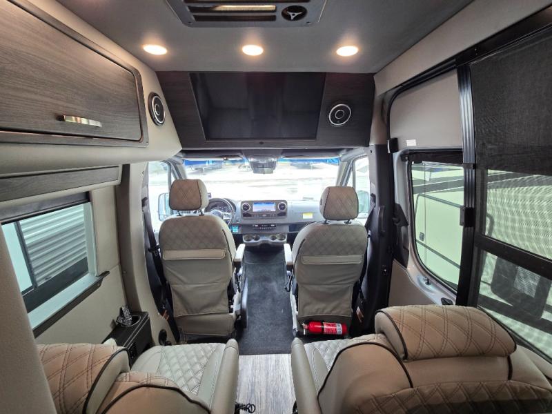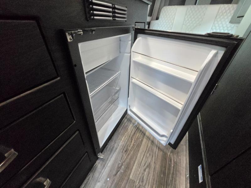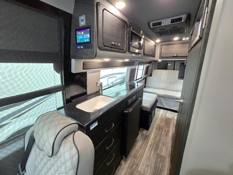 The sophisticated elegance found on the Patriot Class B diesel motorhomes by Midwest Automotive Designs is sure to entice you! The interior is packed with luxury appointments to make any trip enjoyable. Some of these include valances with wood inlay and indirect lighting, solid surface countertops, custom seating with seat belts, and a complete privacy shade package you are sure to appreciate. There are multiple 120V outlets and USB 12V chargers to keep you powered up, and the Quiet Tech 2.5kW propane generator will provide even more power. Outside, you'll find an upgraded Sumo suspension, an all-in-one utility bay, an exterior shower, and a roof-top solar charging system that will provide off-grid capabilities. And don't overlook the available options, like the air ride suspension system, outdoor entertainment prep kit, power window shades, and more!