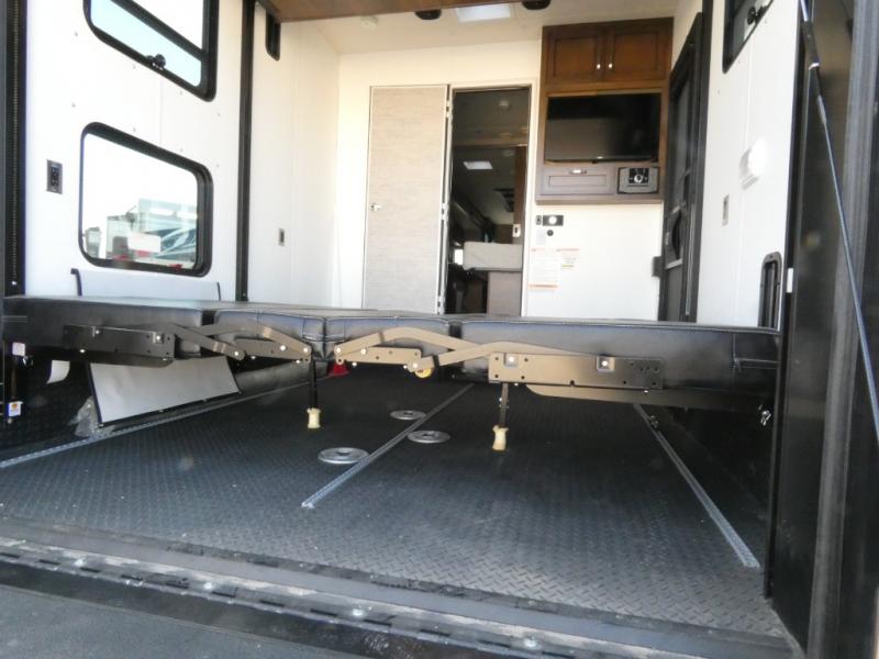 With any Canyon Star Class A diesel toy hauler motorhome by Newmar, you will enjoy a Freightliner front engine diesel chassis with 340HP to power your trips. The garage has so many features that will make your trip easier, like a fueling station, ramp door, assist handle, and more. There's also a rear hitch for towing your car. Come check this unit out today!