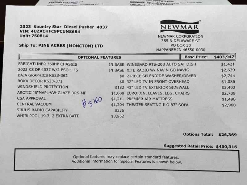 Used 2023 Newmar Kountry Star 4037 Diesel Pusher 360 h.p. Motor Home Class A - Diesel
