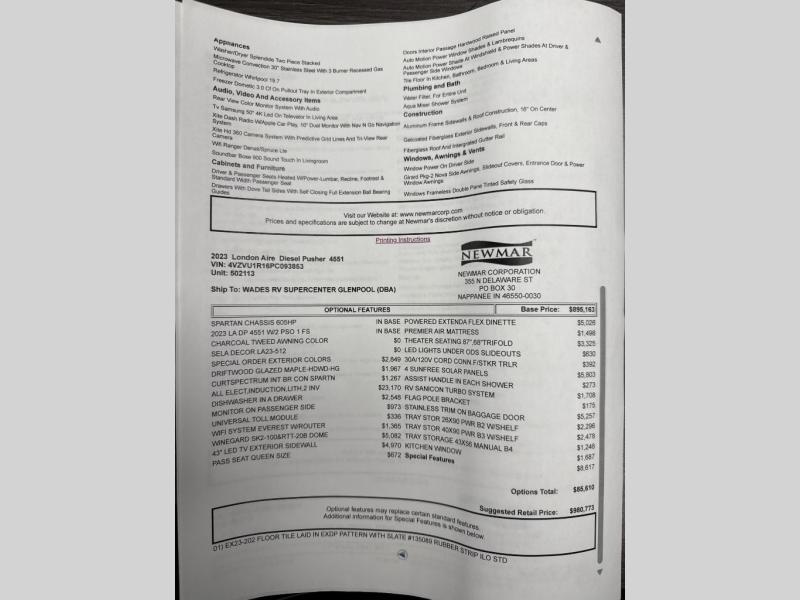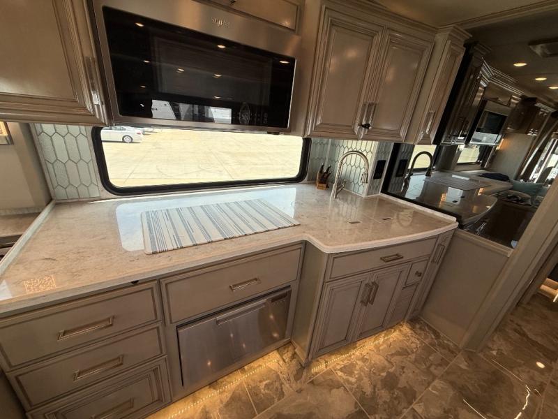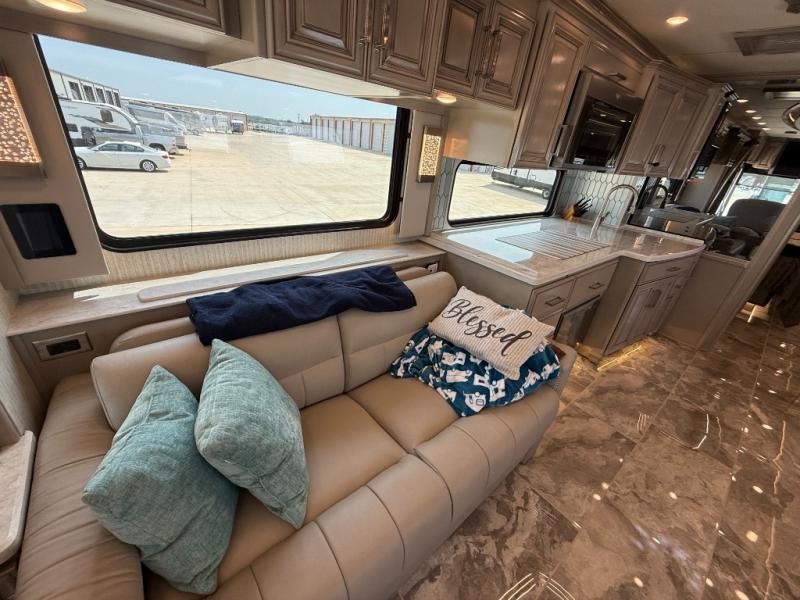 Experience the ultimate in luxury motorhome travel with this 2023 Newmar London Aire 4551, a true flagship coach designed for those who expect the very best. Built on the robust Spartan K3 chassis and powered by a 605HP Cummins X15 diesel engine, the London Aire delivers a quiet, smooth ride with all the power you need to conquer mountain grades and long-distance adventures.