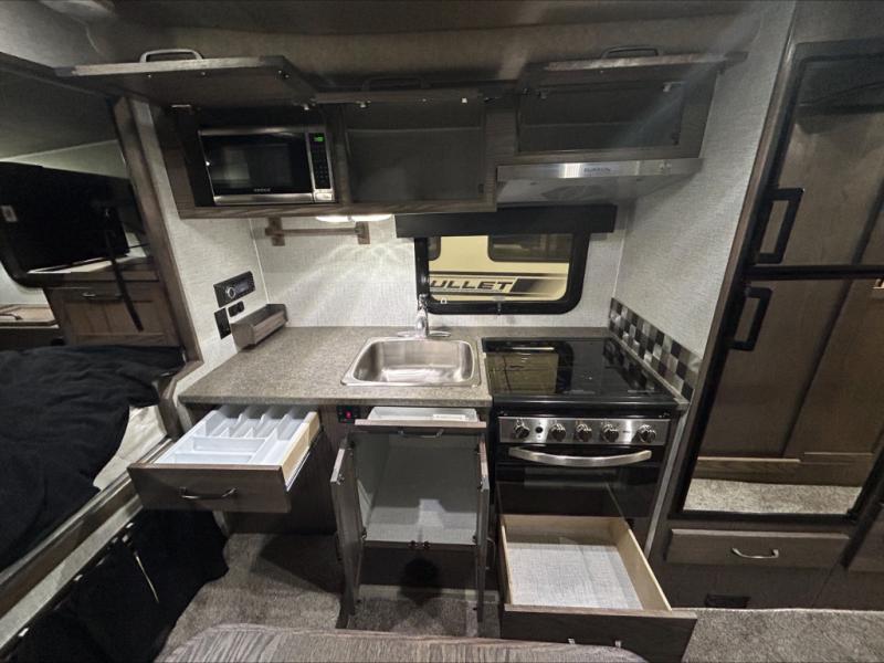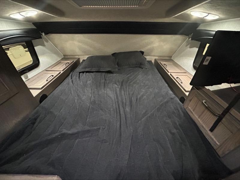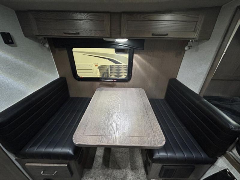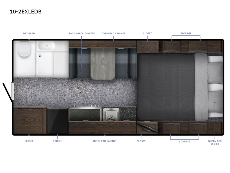 Enjoy a home on top of your long bed truck with this truck camper! Start each morning feeling recharged after sleeping on the front queen bed while your electronics recharge at the 12V USB charging stations. Fill your bellies with fried bacon and eggs cooked on the three burner stove with oven and drink a cold glass of orange juice stored in the 6.3 cu. ft. three way refrigerator. Plus, you can eat your meals at the face-to-face dinette and transform into an extra sleeping space. You can even freshen up each morning in the dry bath with extra room, a divider that separates the shower from the toilet, and a built-in shower seat. There is plenty of storage throughout with closets and overhead cabinets too!