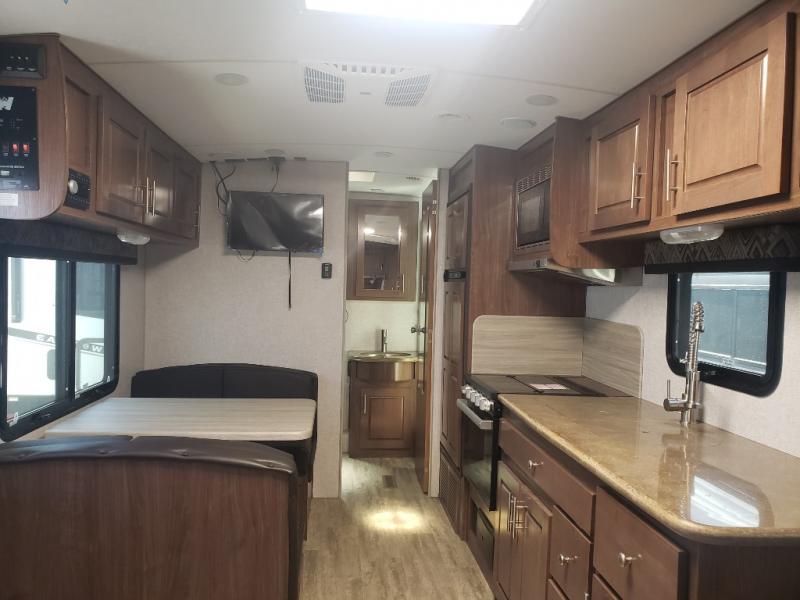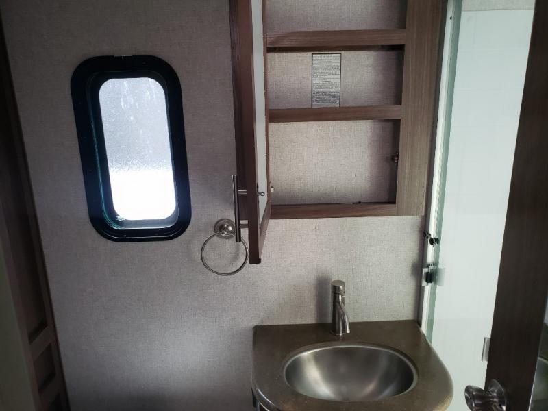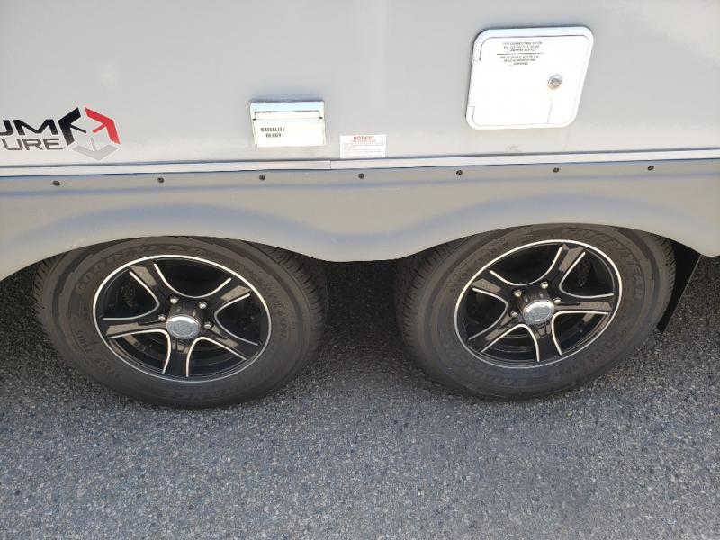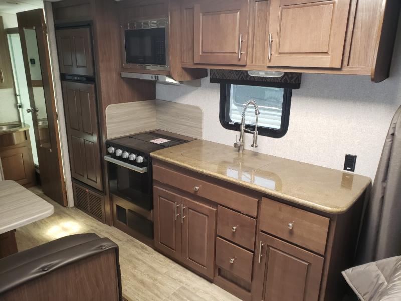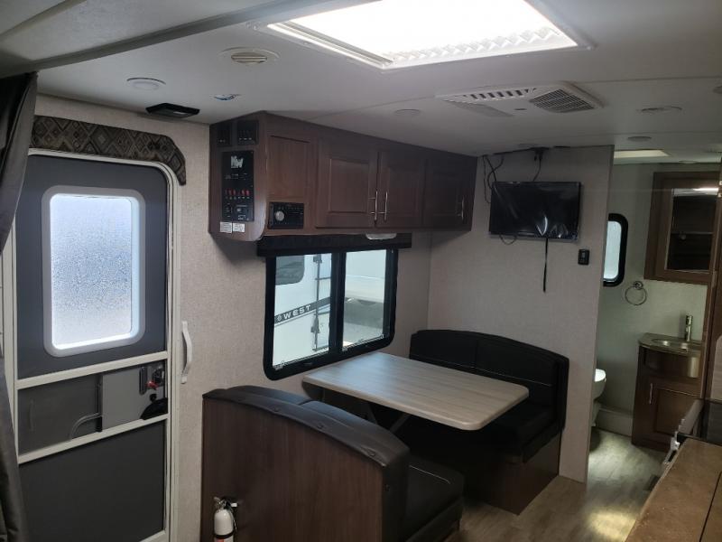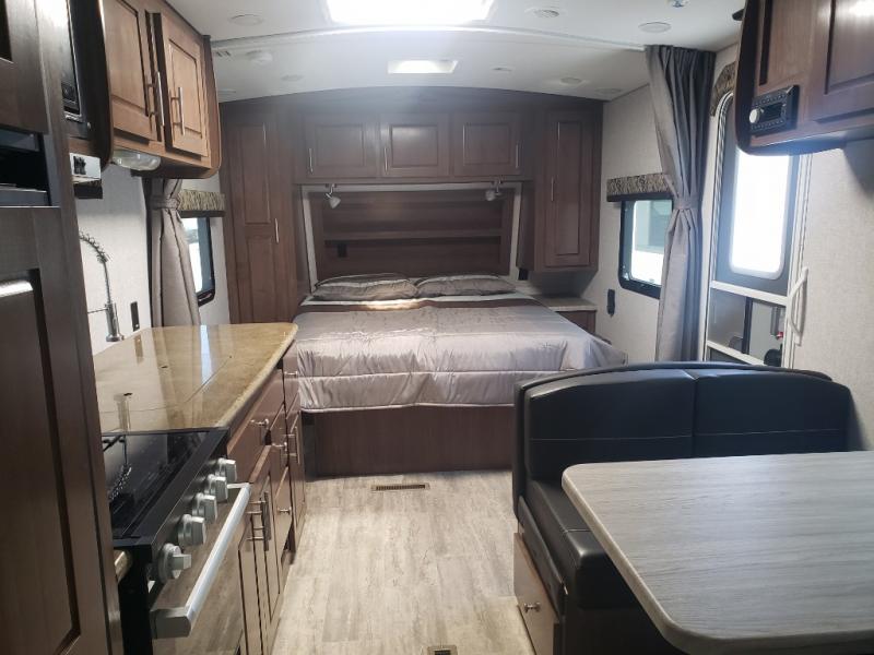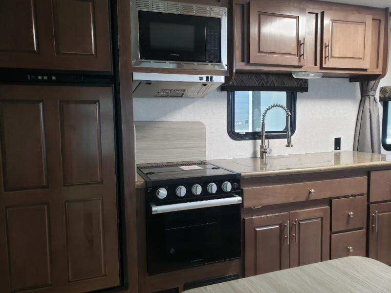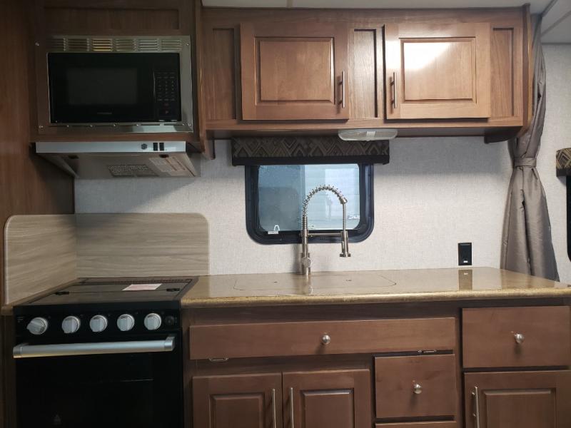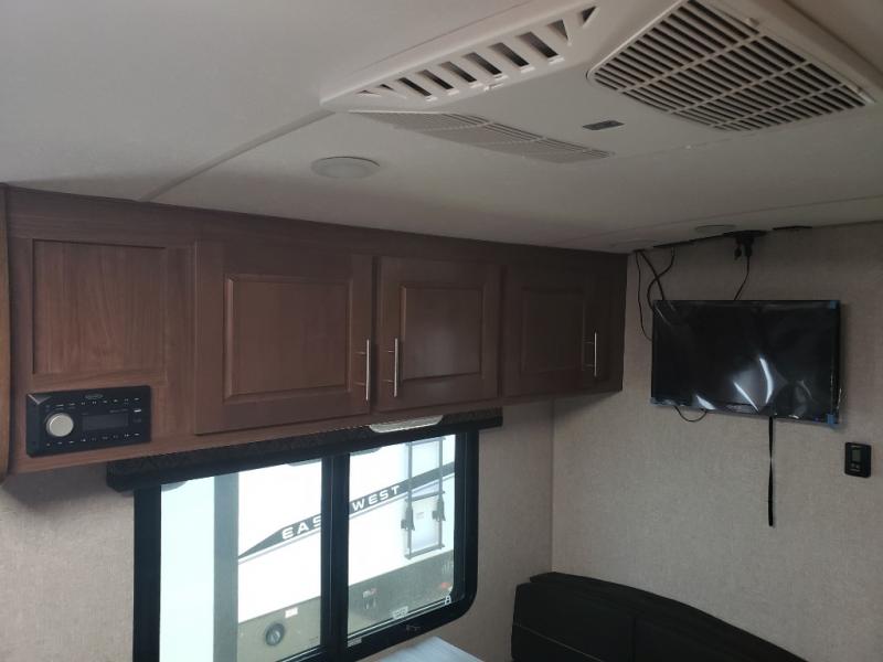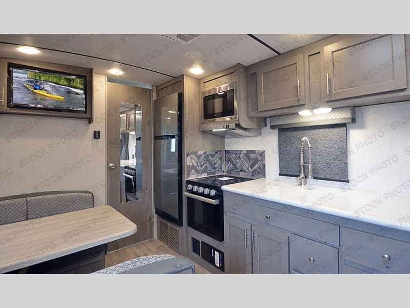 You will enjoy getting away every weekend with this Arctic Fox North Fork travel trailer! The 10 cu. ft. 12V refrigerator will give you a place to store your perishable ingredients while the microwave will allow you to heat up a quick meal each night. After hiking and biking all day long, the 28" LED TV will be a great way to spend the rest of the night before going to sleep on the RV queen bed. There is also a privacy curtain here so you can have your own space at night, and a booth dinette that converts to a 40" x 76" sleeping area for guests!