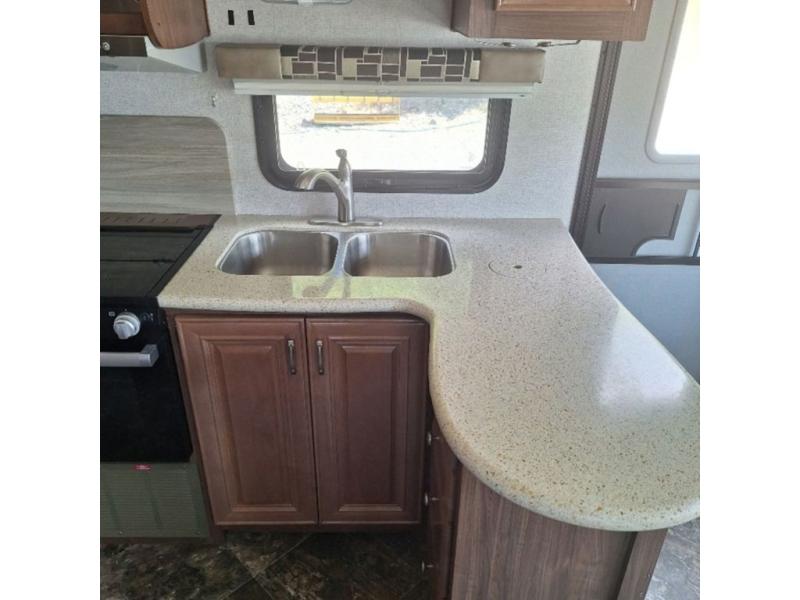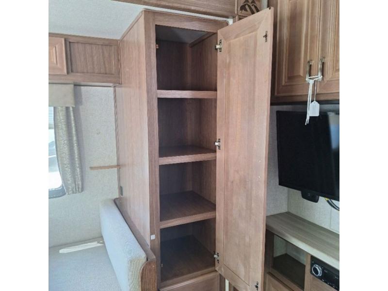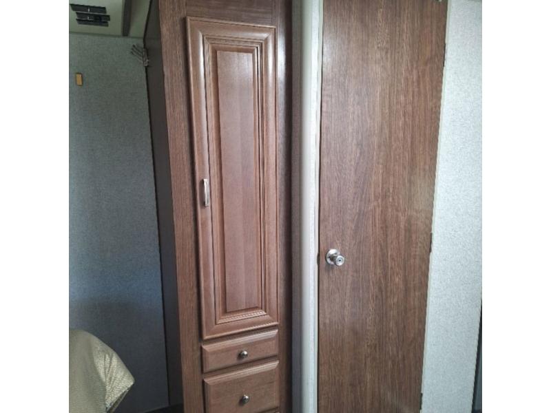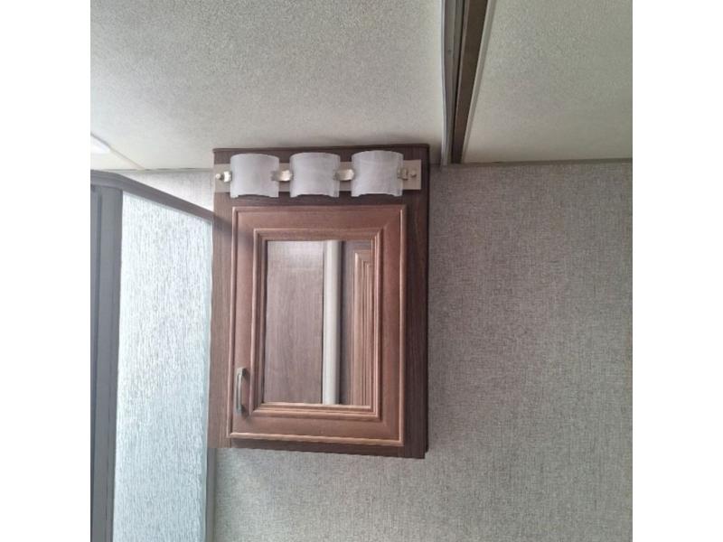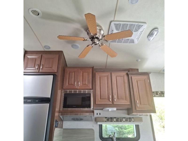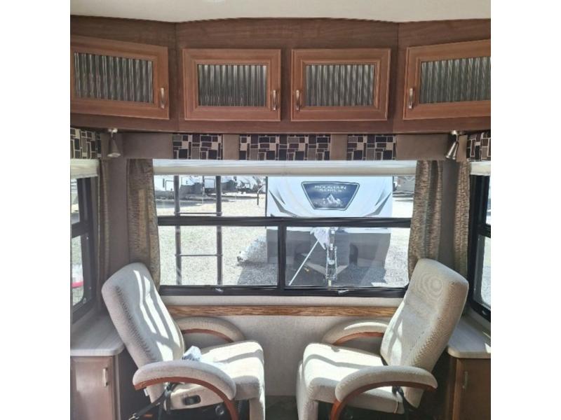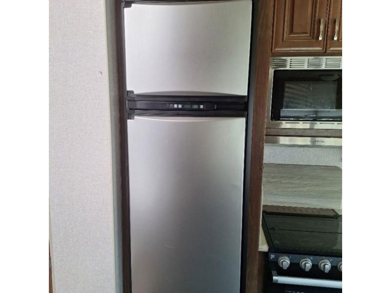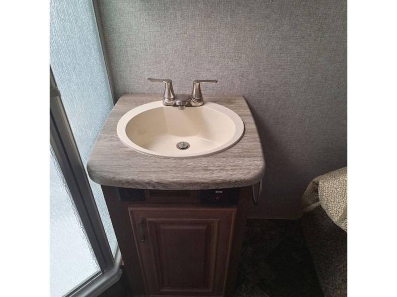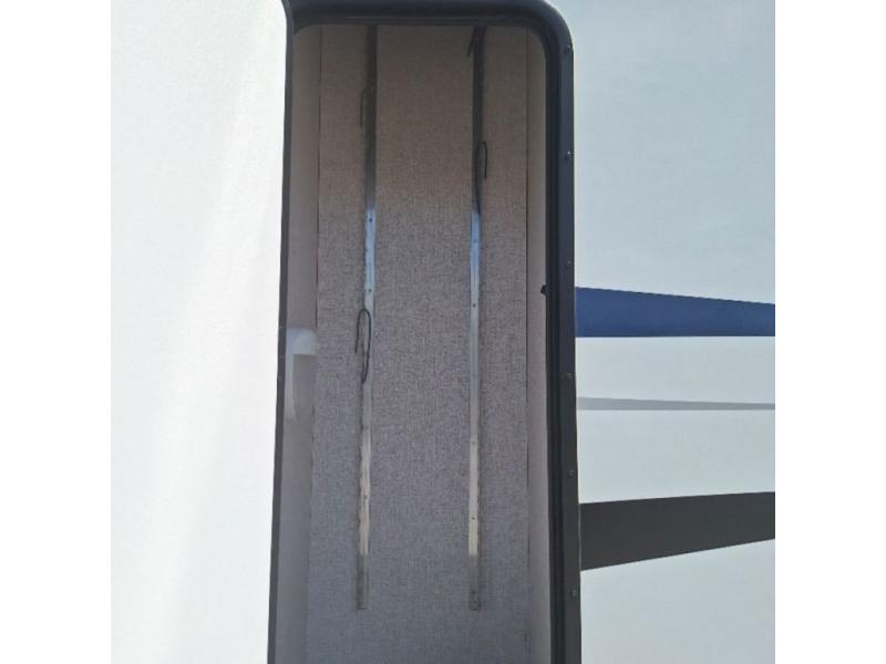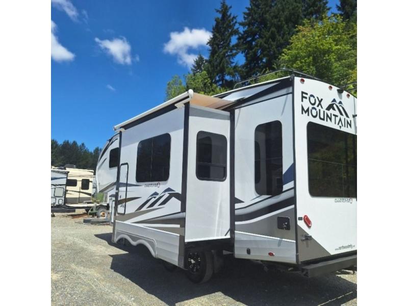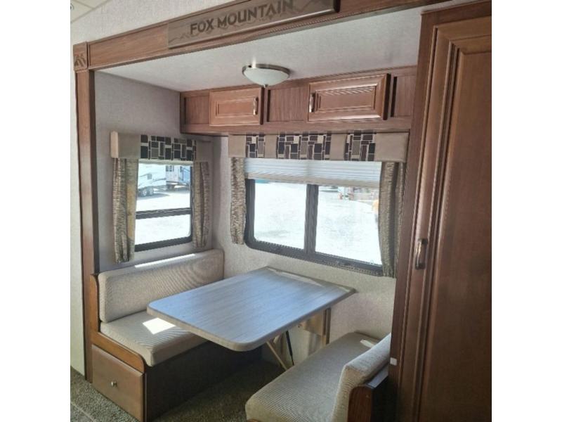 Get out and explore the best places to see with this Fox Mountain! Once you have arrived at the perfect spot, setup the 15' Carefree Travel'R 12V LED awning with adjustable pitch, and the slide out which includes the booth dinette and pantry. You can convert the dinette to a 40" x 72" sleeping area if needed for overnight guests after dining or playing games. Relax on the rear jackknife sofa with decorative pillows and two end tables to set your cellphone and beverages on or whip up a meal in the kitchen with an L-shaped counter top. The split bathroom includes a shower and sink along one side, a private toilet on the other, and a curtain to close for privacy that leads you into the front bedroom where you can sleep on the NW TruRest queen mattress, and there is a nightstand and wardrobe for your belongings.
