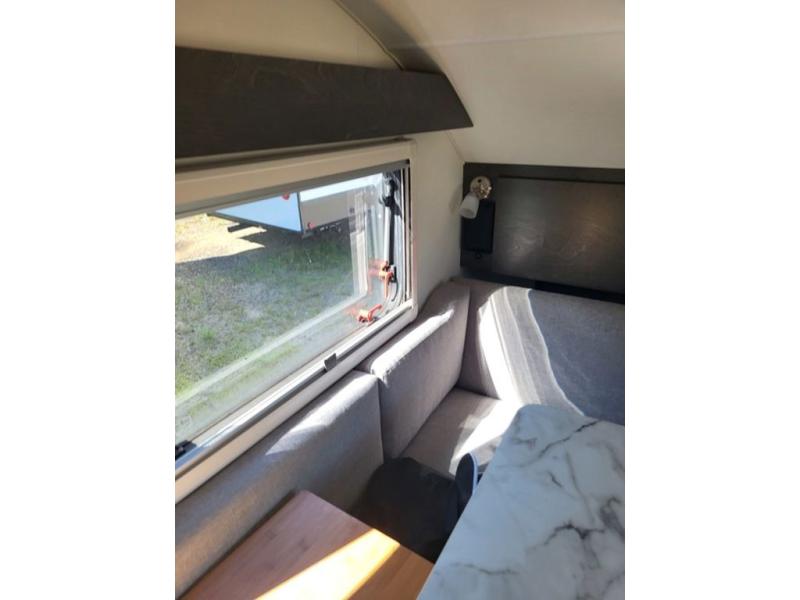 With any TAB 320 teardrop trailer by nüCamp RV, the interior offers deluxe Ohio-Amish cabinetry, soft close cabinetry, a custom screen/shade system, and a wet bath with a cassette toilet and built-in sink. The iconic teardrop design offers an easy-to-tow unit with amenities found in much bigger trailers. Some other highlights include the Alde central heat/hot water system, the central air conditioner, roof mounted solar, and the Nautilus water management system. The optional Boondock package provides features such as aggressive off-road tires, an aluminum utility platform, custom molded fenders, plus more!