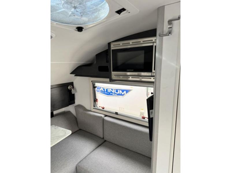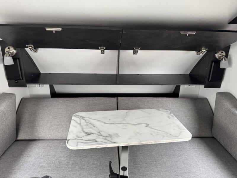 With any TAB 320 teardrop trailer by nüCamp RV, the interior offers deluxe Ohio-Amish cabinetry, soft close cabinetry, a custom screen/shade system, and a wet bath with a cassette toilet and built-in sink. The iconic teardrop design offers an easy-to-tow unit with amenities found in much bigger trailers. Some other highlights include the Alde central heat/hot water system, the central air conditioner, roof mounted solar, and the Nautilus water management system. The optional Boondock package provides features such as aggressive off-road tires, an aluminum utility platform, custom molded fenders, plus more!