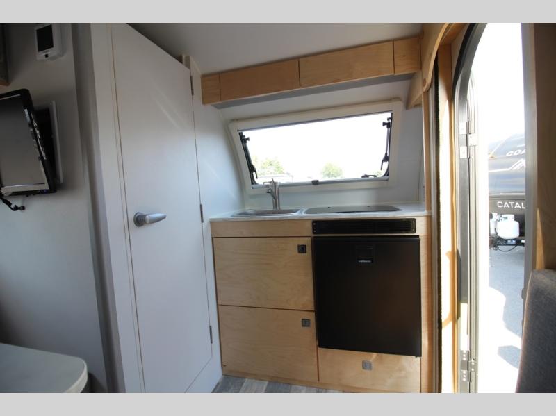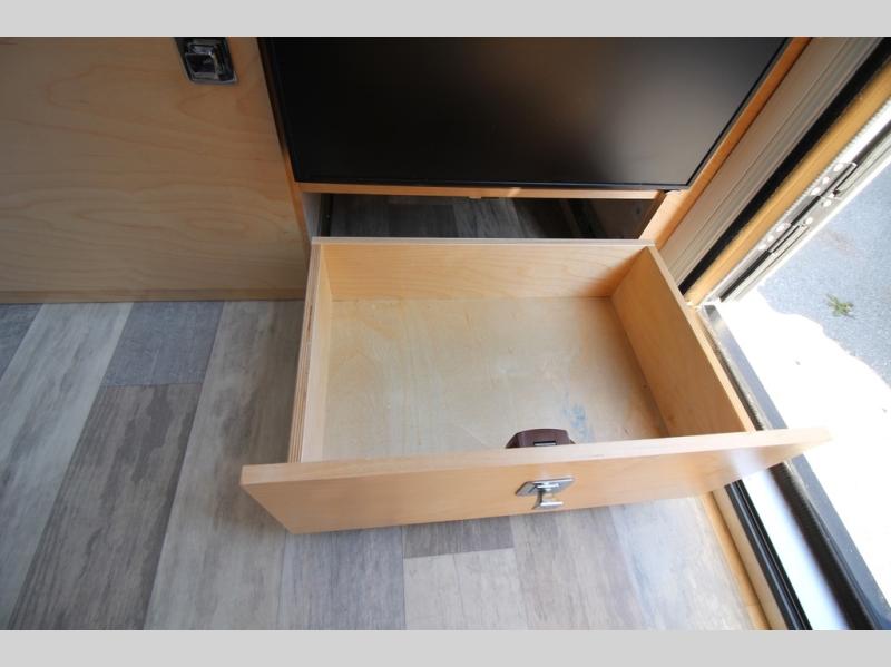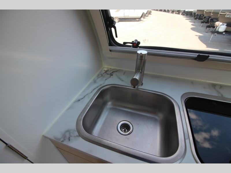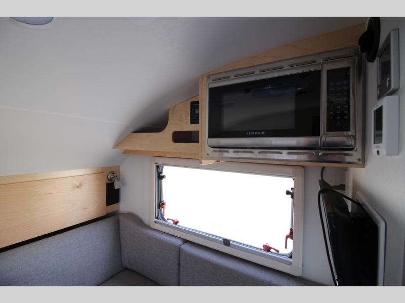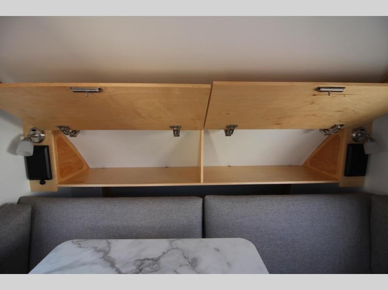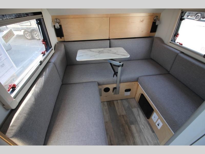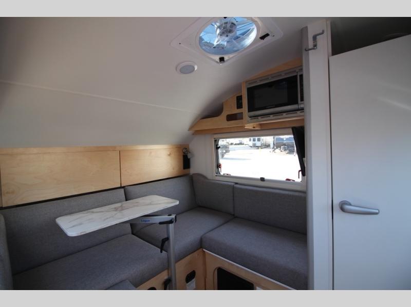 With any TAB 320 teardrop trailer by nüCamp RV, the interior offers deluxe Ohio-Amish cabinetry, soft close cabinetry, a custom screen/shade system, and a wet bath with a cassette toilet and built-in sink. The iconic teardrop design offers an easy-to-tow unit with amenities found in much bigger trailers. Some other highlights include the Alde central heat/hot water system, the central air conditioner, roof mounted solar, and the Nautilus water management system. The optional Boondock package provides features such as aggressive off-road tires, an aluminum utility platform, custom molded fenders, plus more!