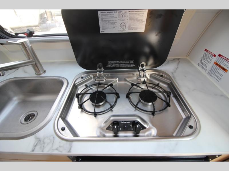 Whether you make plans or enjoy last-minute trips, this trailer offers all the essentials for a perfect weekend! From the interior kitchen, the wet bath and the U-shaped dinette that offers two sleeping configurations, you will have everything you need. You can choose to setup a full bed or split beds, keep your electronics charged with the dual 110/USB ports, make warm meals using the two burner glass-top stove, and store cold items in the 2.3 cu. ft. 12V refrigerator. And the wet bath or the external shower will keep you clean and refreshed while camping. If you enjoy more off-road type camping, consider the optional Boondock package and Lithium battery option which will allow you to go off-grid. The Lithium battery will provide 200-amp hrs. of lithium w/internal heat, Bluetooth connected SmartShunt and 2000-watt inverter/charger with Bluetooth control. Please note: The model specs. shown are for the standard TAB 320. With the Boondock optional package the length is increased by 3" making it 15' 6", the height will be 8', dry tongue weight will be 215 lbs. and total gross dry weight will be 2,045 lbs.