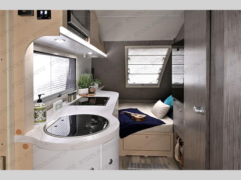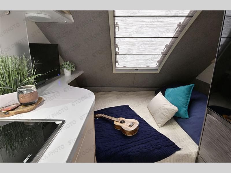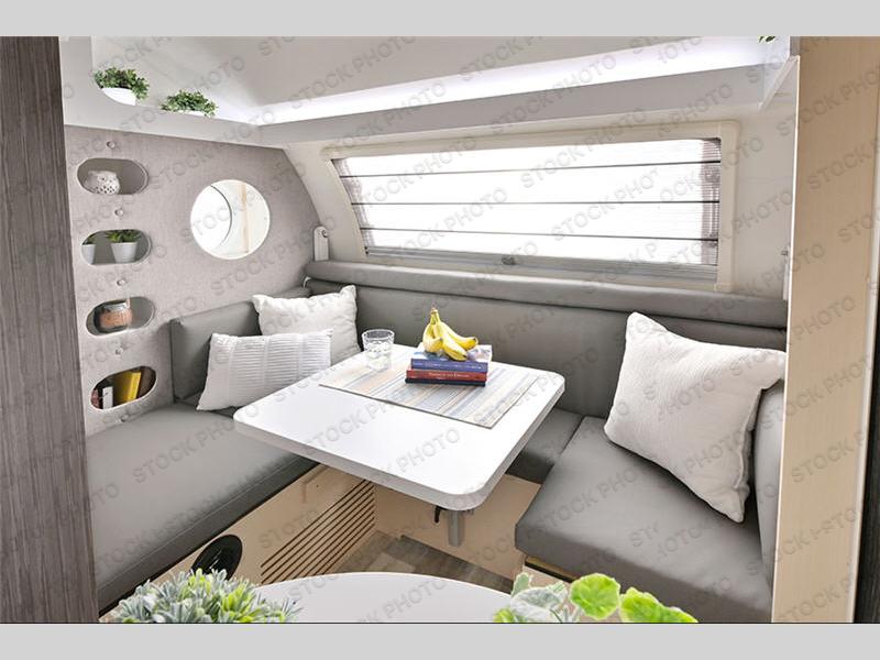 This teardrop trailer offers sleeping space for three with two sleeping areas; one up front and one in the rear. The dinette allows you to eat and relax during the day, and at night this space becomes sleeping space for one. The queen-size sleeping area is located on the opposite side with the wet bath in between for convenience for all. The galley kitchen will give the cook a place to make warm meals and store leftovers in the 4.6 cu. ft. fridge. Everyone can watch the 24" TV through the Bluetooth media center before bedtime, or in the morning as you all plan your next activity. And the Alde central heat and Alde FLOW instant hot water system as well as central air conditioning will keep you comfortable where ever you setup. If you enjoy more off-road type camping, consider the optional Boondock package and Lithium battery option which will allow you to go off-grid. The Lithium battery will provide 400-amp hrs. of lithium w/internal heat, Bluetooth connected SmartShunt and 3000-watt inverter/charger with Bluetooth control. Please note: The model specs. shown are for the standard TAB 400. With the Boondock optional package the height will be 8' 11", dry tongue weight will be 407 lbs. and total gross dry weight will be 2,919 lbs.