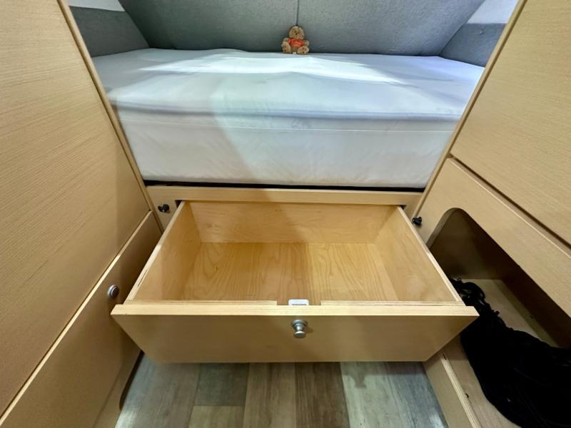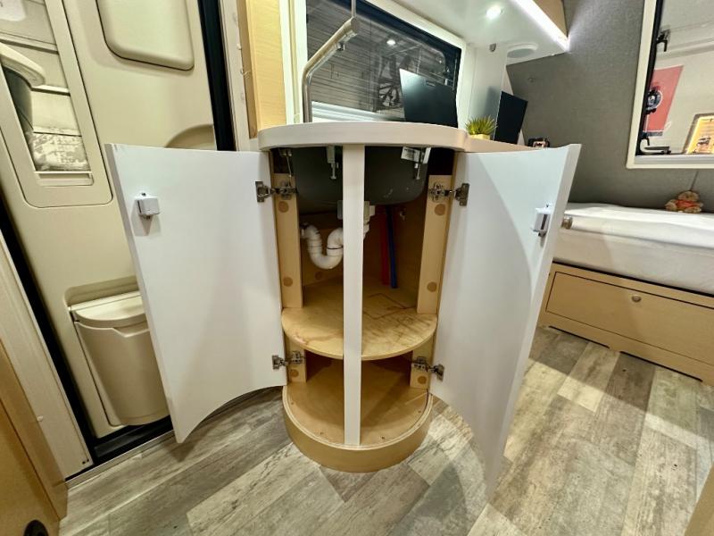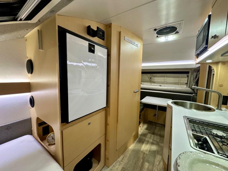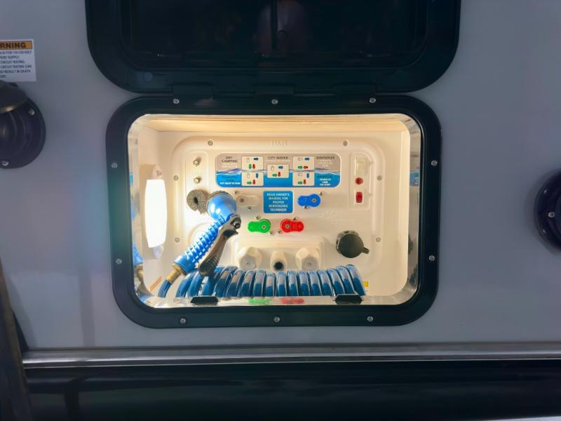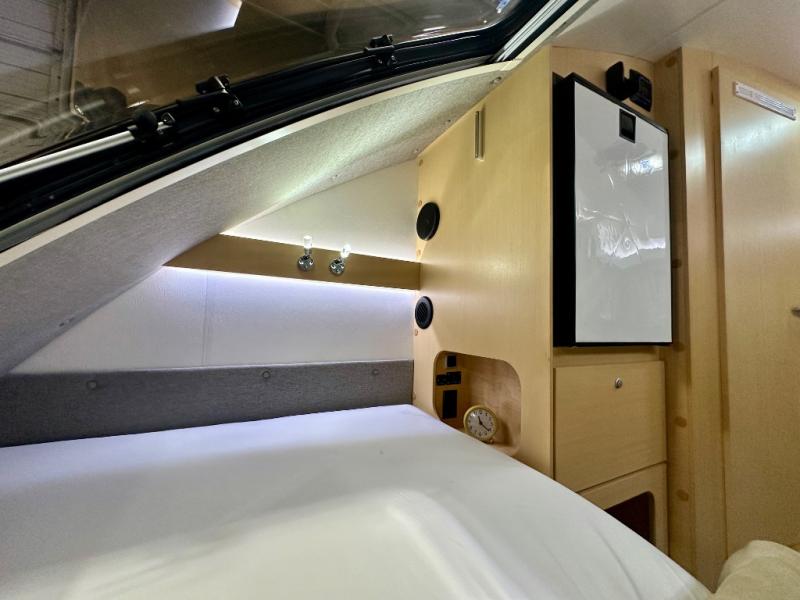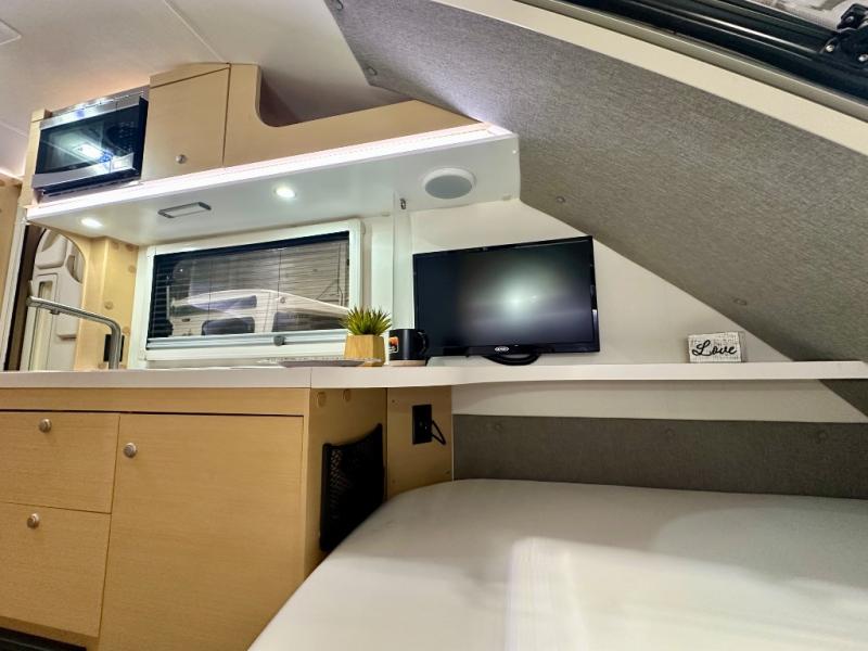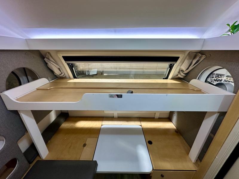 This teardrop trailer offers sleeping space for three with two sleeping areas; one up front and one in the rear. The dinette allows you to eat and relax during the day, and at night this space becomes sleeping space for one. The queen-size sleeping area is located on the opposite side with the wet bath in between for convenience for all. The galley kitchen will give the cook a place to make warm meals and store leftovers in the 4.6 cu. ft. fridge. Everyone can watch the 24" TV through the Bluetooth media center before bedtime, or in the morning as you all plan your next activity. And the Alde central heat and Alde FLOW instant hot water system as well as central air conditioning will keep you comfortable where ever you setup. If you enjoy more off-road type camping, consider the optional Boondock package and Lithium battery option which will allow you to go off-grid. The Lithium battery will provide 400-amp hrs. of lithium w/internal heat, Bluetooth connected SmartShunt and 3000-watt inverter/charger with Bluetooth control. Please note: The model specs. shown are for the standard TAB 400. With the Boondock optional package the height will be 8' 11", dry tongue weight will be 407 lbs. and total gross dry weight will be 2,919 lbs.