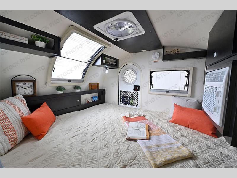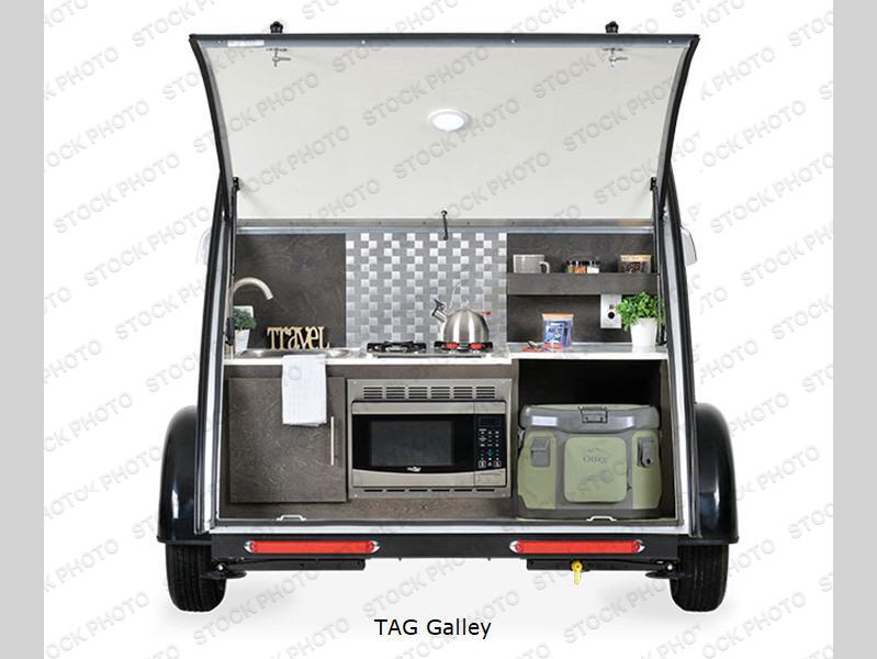 When you are looking to upgrade from a tent, this TAG might be your solution to outdoor fun with inside sleeping arrangements for two and an outdoor kitchen! You can enter from either side to enjoy your own 58" x 78" queen bed as you look at the stars each night through the large front stargazer window. The interior also offers an air conditioner, under-bed storage, and LED lights. So easy to hitch up and go in your own TAG! If you prefer a little more Boondocking off-road, choose the optional Boondock package. Please note: standard model specs. shown, Boondock package features 96 lb. dry tongue weight, 1,384 total gross dry weight, and 15" tires instead of standard 13", and is two inches wider at 6'10".