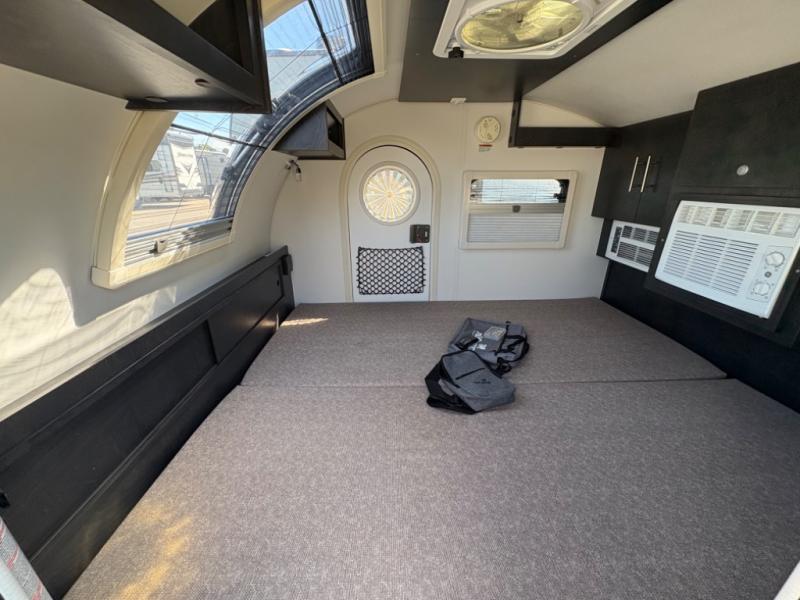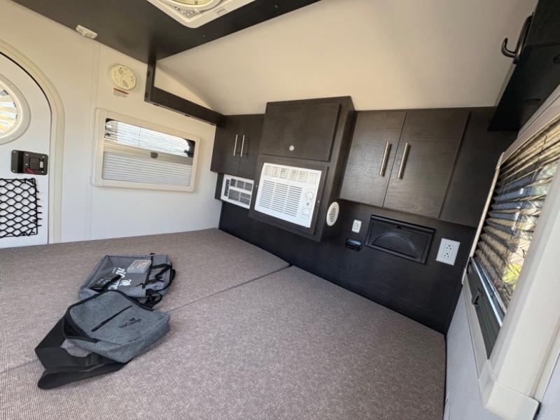 The 6-Wide XL model gives you more headroom and elbow space, making it perfect for taller campers or anyone who wants a little more room to stretch out. The spacious sleeping area with a true queen-size bed, stargazer window, and LED accent lighting turns this trailer into a cozy retreat after a day of exploration.