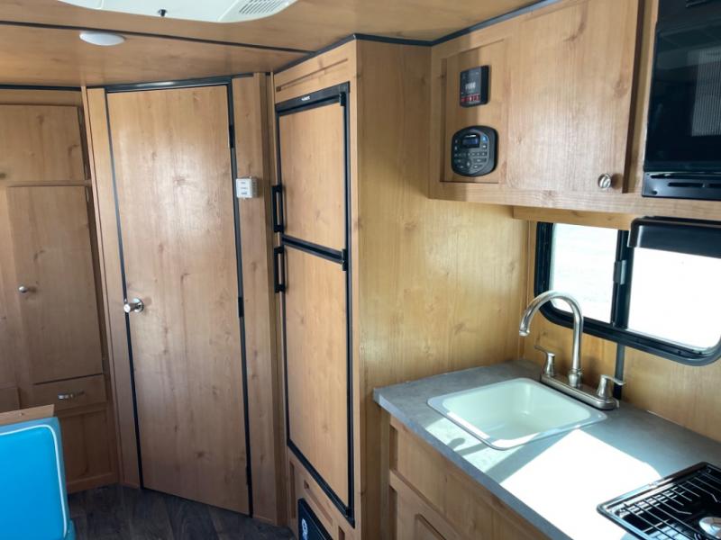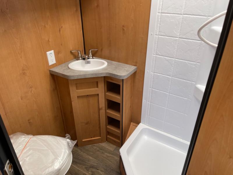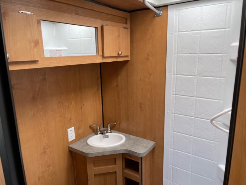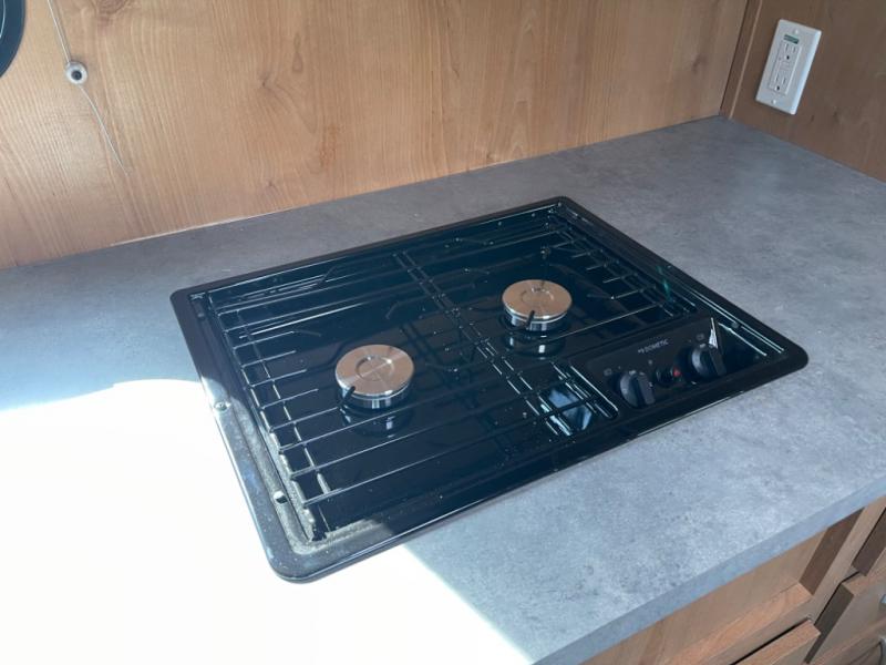 Want a trailer with style that you would be able to park easily? This 21'9" exterior length trailer offers sleeping space for three to four when you utilize the dinette as extra sleeping space while you enjoy your own 60" x 74" queen bed up front. The next morning, the cook can whip up breakfast using the two-burner cooktop and microwave and you all can dine inside at the dinette or outside under the power awning if you brought your camping chairs or the campground has a table. The closet by the entry and the dry bath will be super handy for either your clothes, blankets and/or dry goods, and you will find more storage inside and outside.