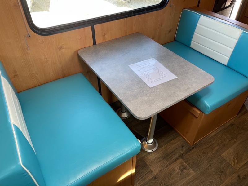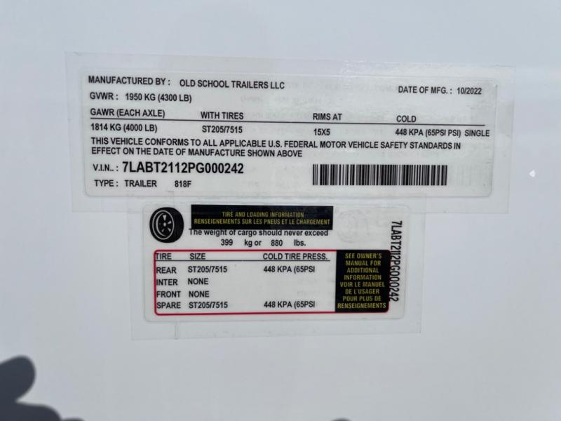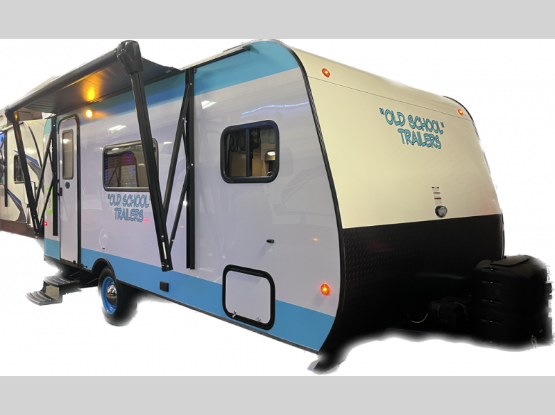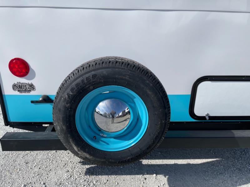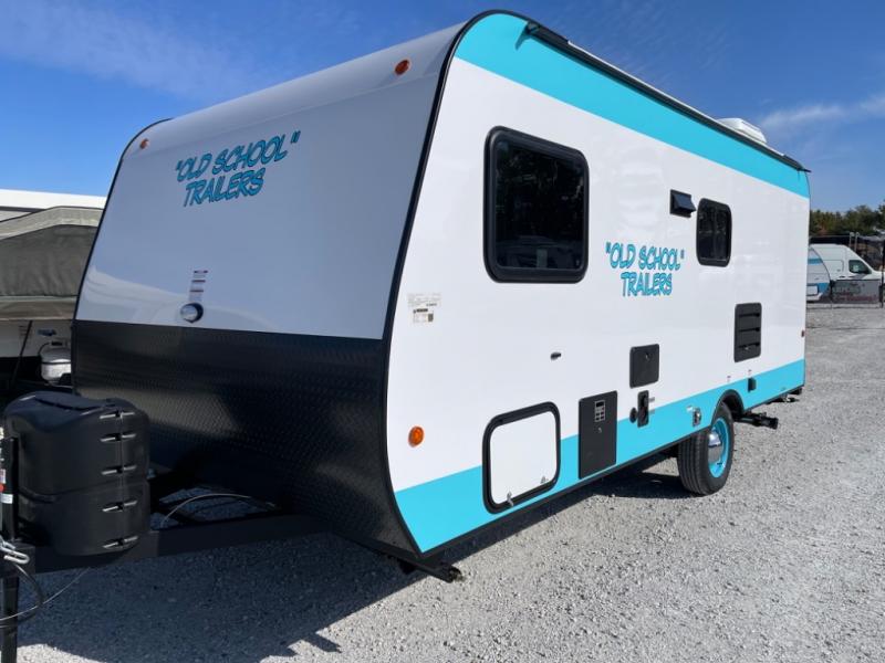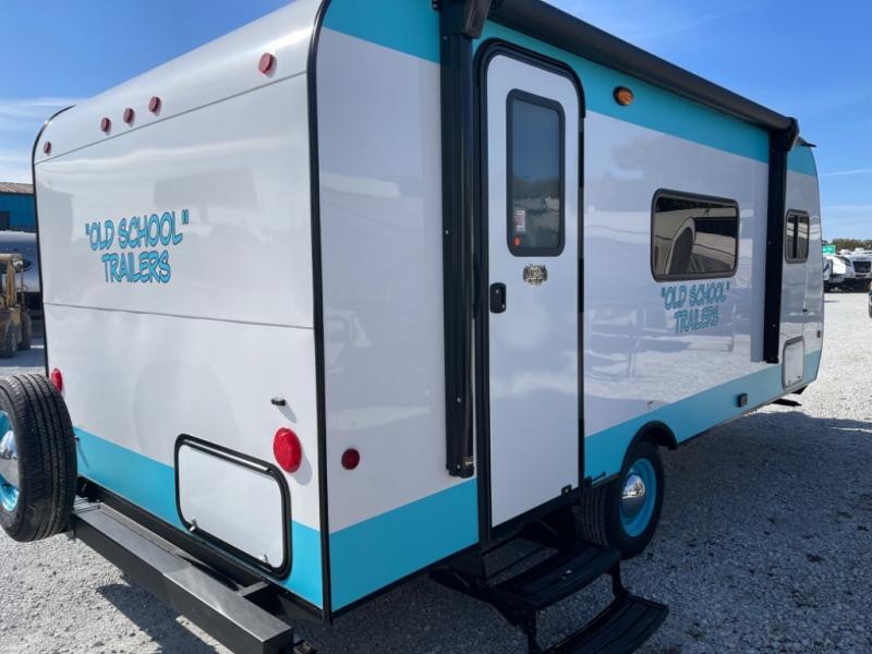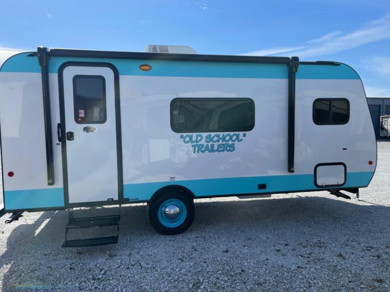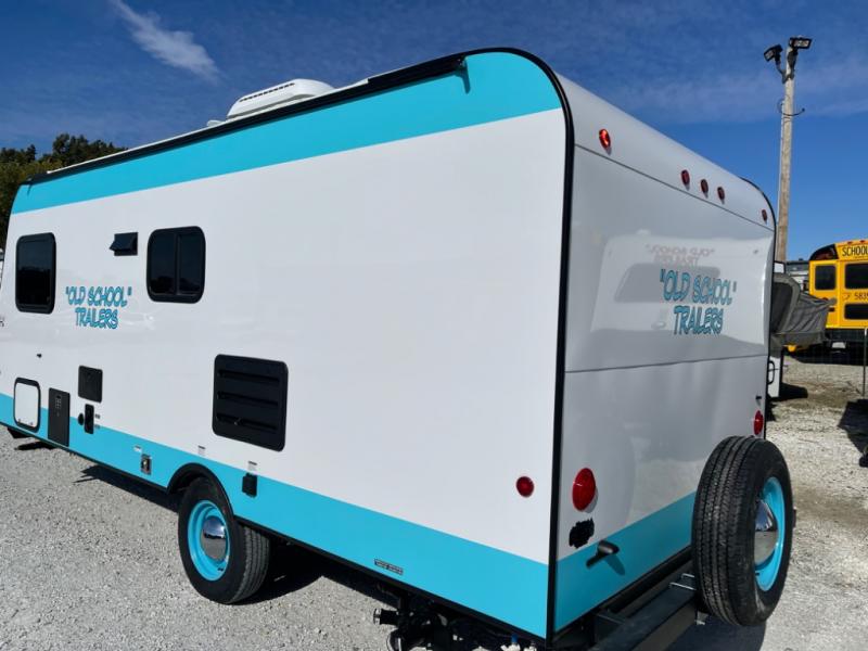 With any Old School Trailers travel trailer you will get to turn heads with the vintage style, and enjoy features you are accustom to having today! These trailers are built lightweight allowing you to tow with even the smaller SUVs depending on the trailer you choose. The aluminum cage construction with .030 metal is built on a Lippert frame with OSB flooring with Darco, OSB roof decking with Dicor covering, and Sol-R-Wal insulation. The tires include white walls with painted rims adding to the exterior's style, and the interior is just as impressive.